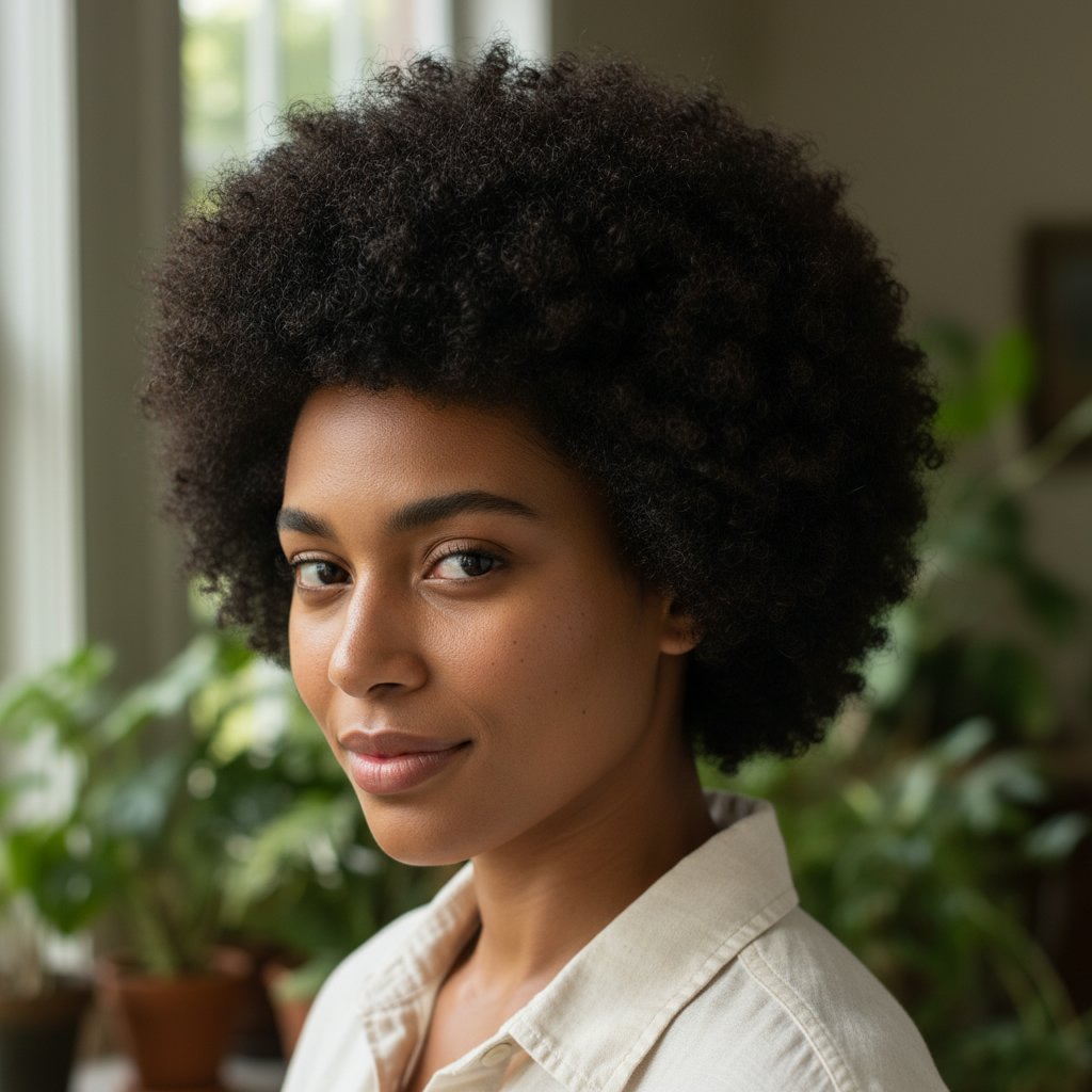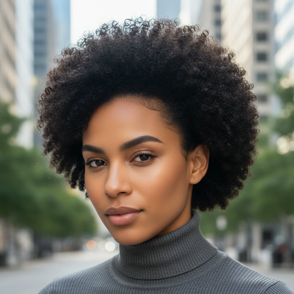 The classic round Afro stands as a timeless symbol of strength and beauty, embodying the essence of natural hair pride.