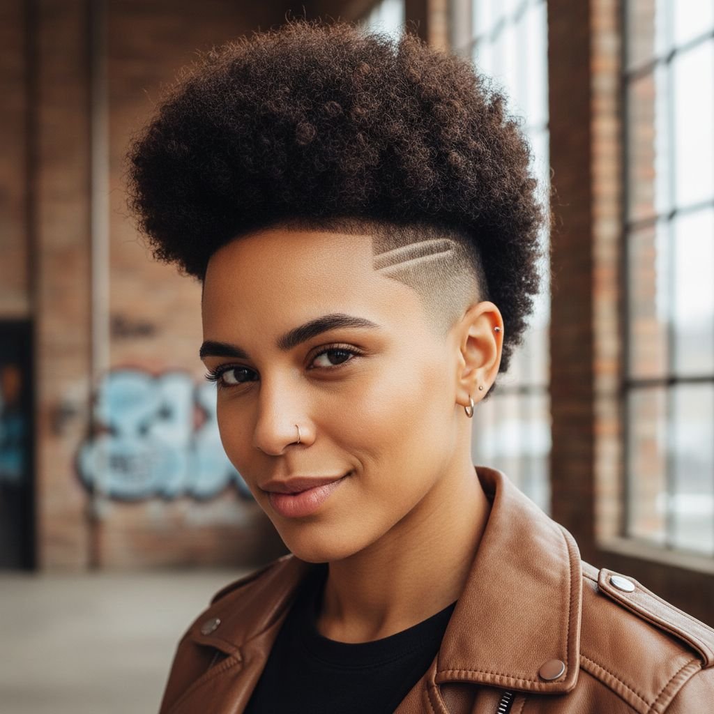 Pairing an Afro with an undercut adds an edgy, modern twist to the natural silhouette, showcasing the hair's versatility.