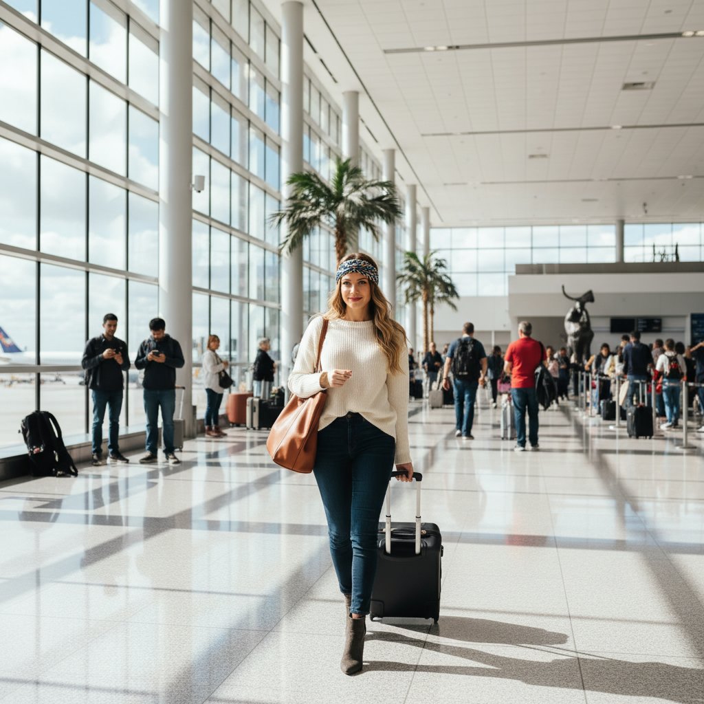 A minimalist ponytail is both practical and stylish, ensuring you look polished from boarding to arrival.