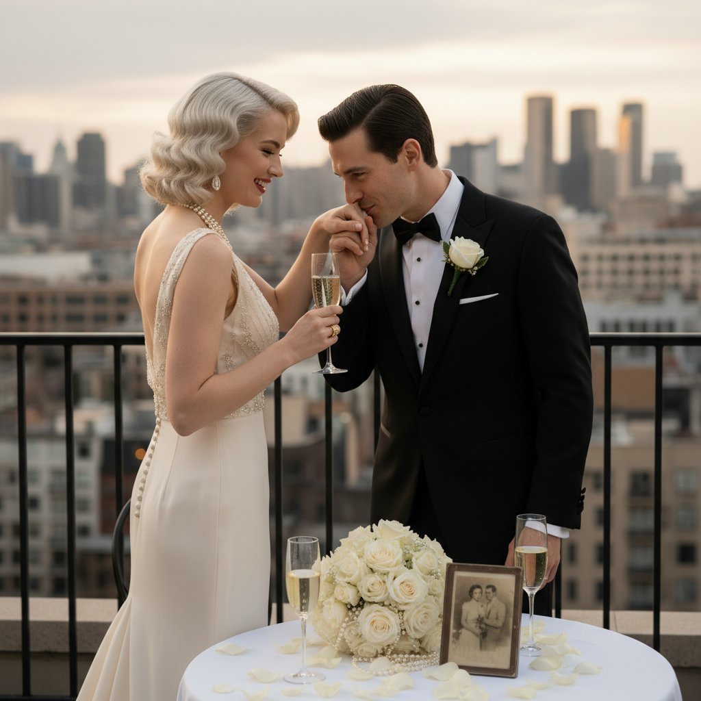 Channel vintage glamour with Old Hollywood curls, a look that's as timeless as your love story.