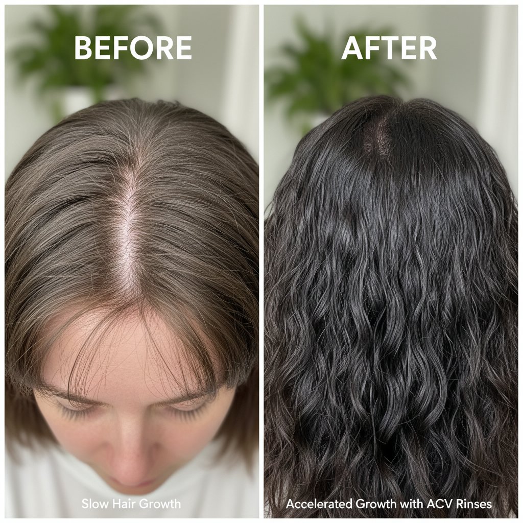 Before: Slow hair growth. After: Accelerated hair growth from stimulating scalp with ACV rinses.