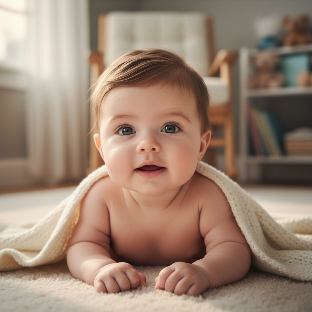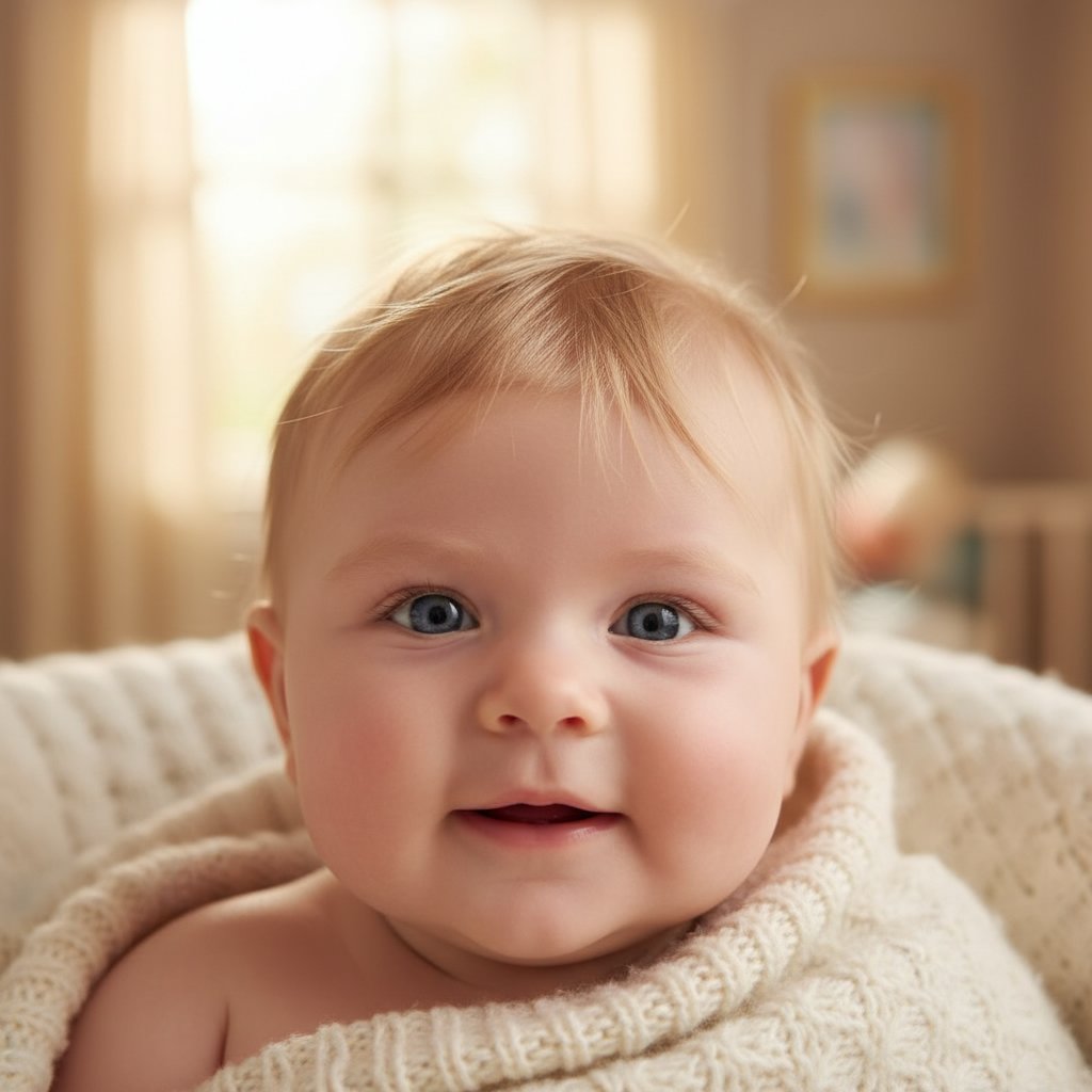 Gentle wispy bangs frame baby's face beautifully, offering a simple and sweet style without the need for accessories.