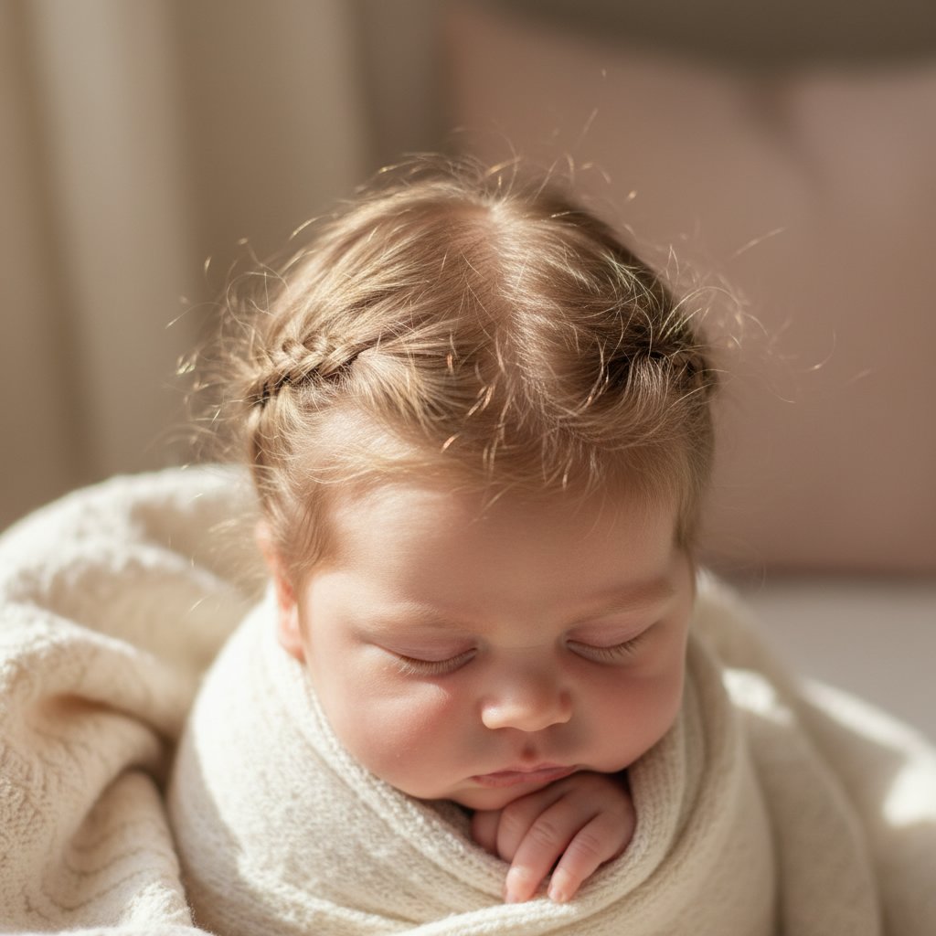 For infants with slightly longer hair, a loose braid can add a whimsical touch, braided gently to avoid any pulling.