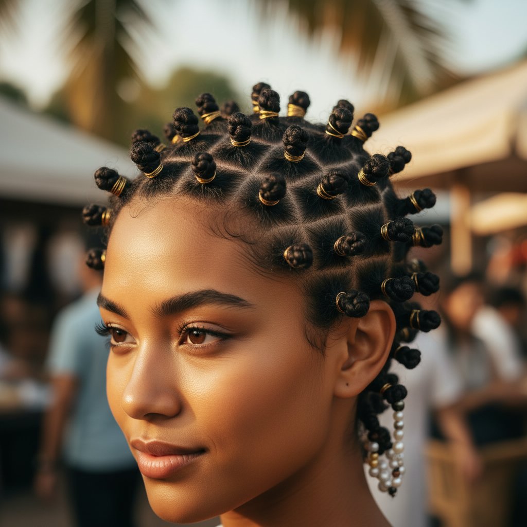 Accessorizing Bantu knots with beads or rings adds a personalized touch, celebrating individuality and cultural heritage.
