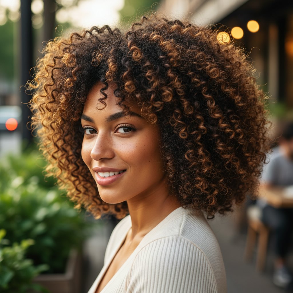 A Bantu knot out reveals a head full of defined, bouncy curls, offering a stunning transformation from the initial style.
