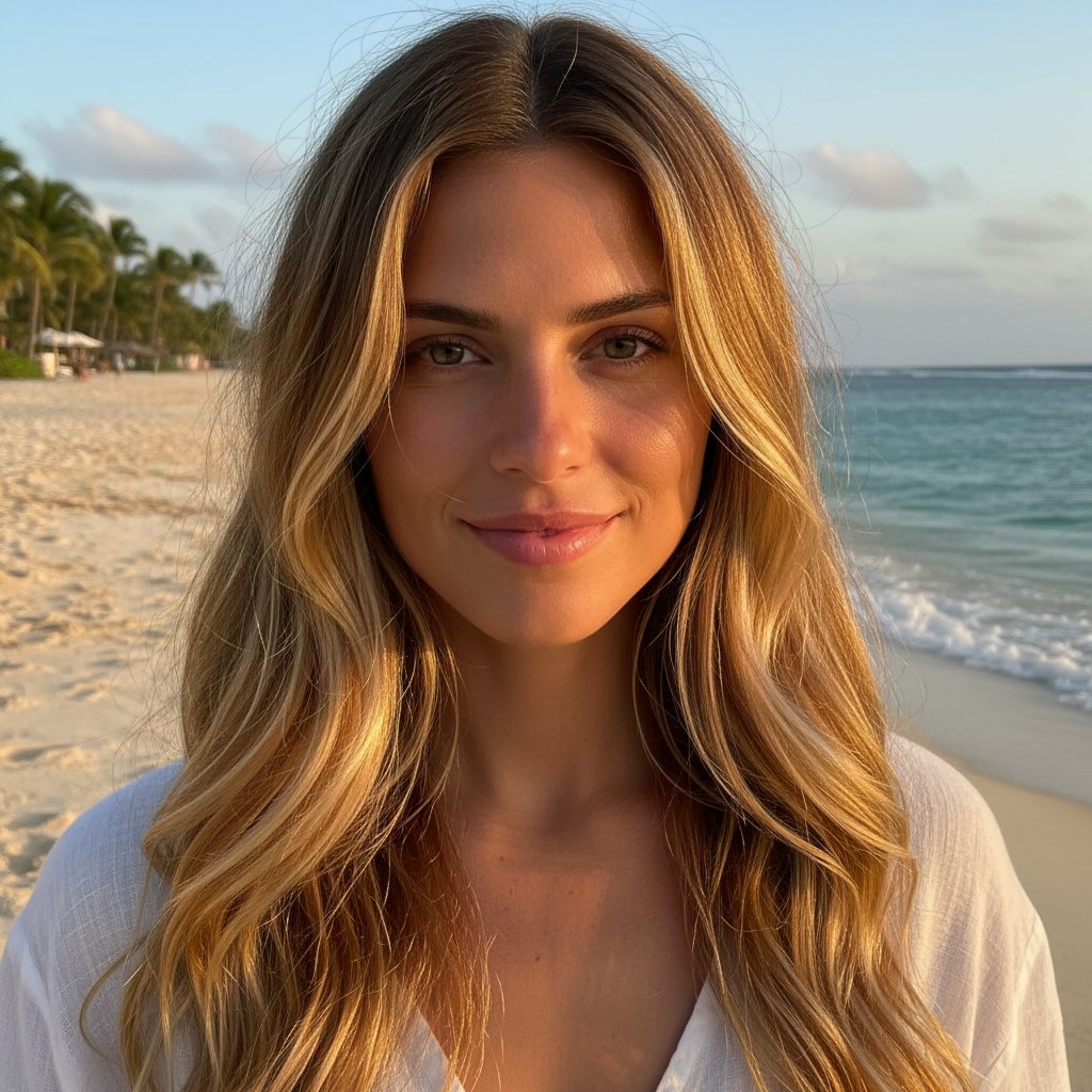 Illuminate your locks with sun-kissed highlights, mirroring the golden hues of the sun and sand.