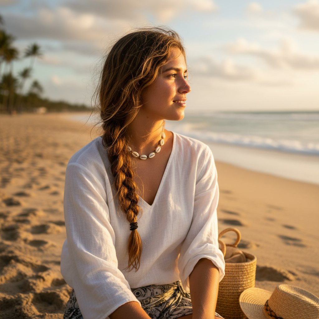 A loose side braid is effortlessly chic and practical, keeping your hair tangle-free while you enjoy the shore.