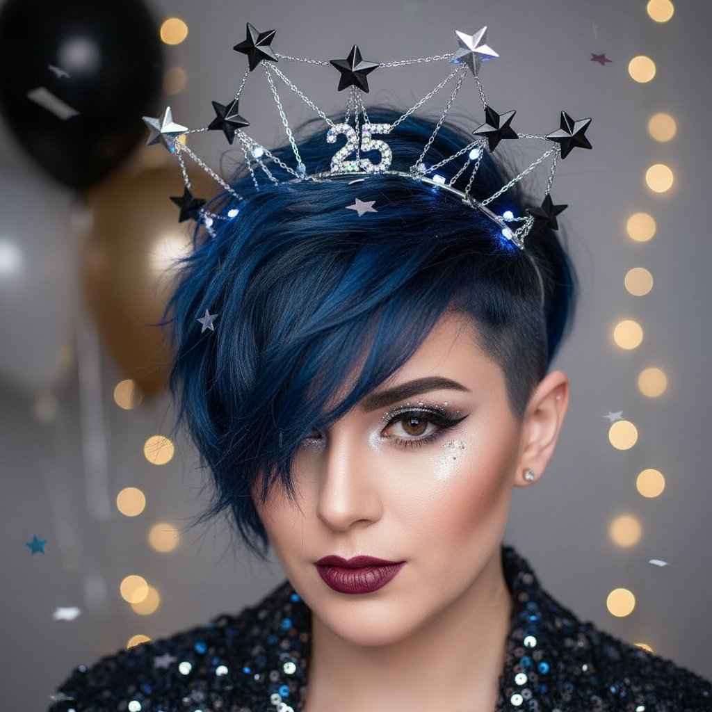 For those with shorter hair, an edgy pixie cut paired with a statement hairpiece can make your birthday outfit pop.