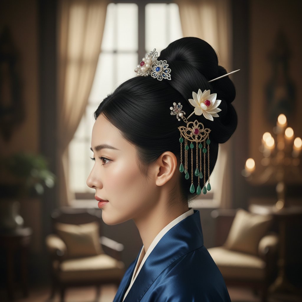 An elegant top knot complemented by jeweled hair accessories adds sophistication and sparkle to your birthday look.