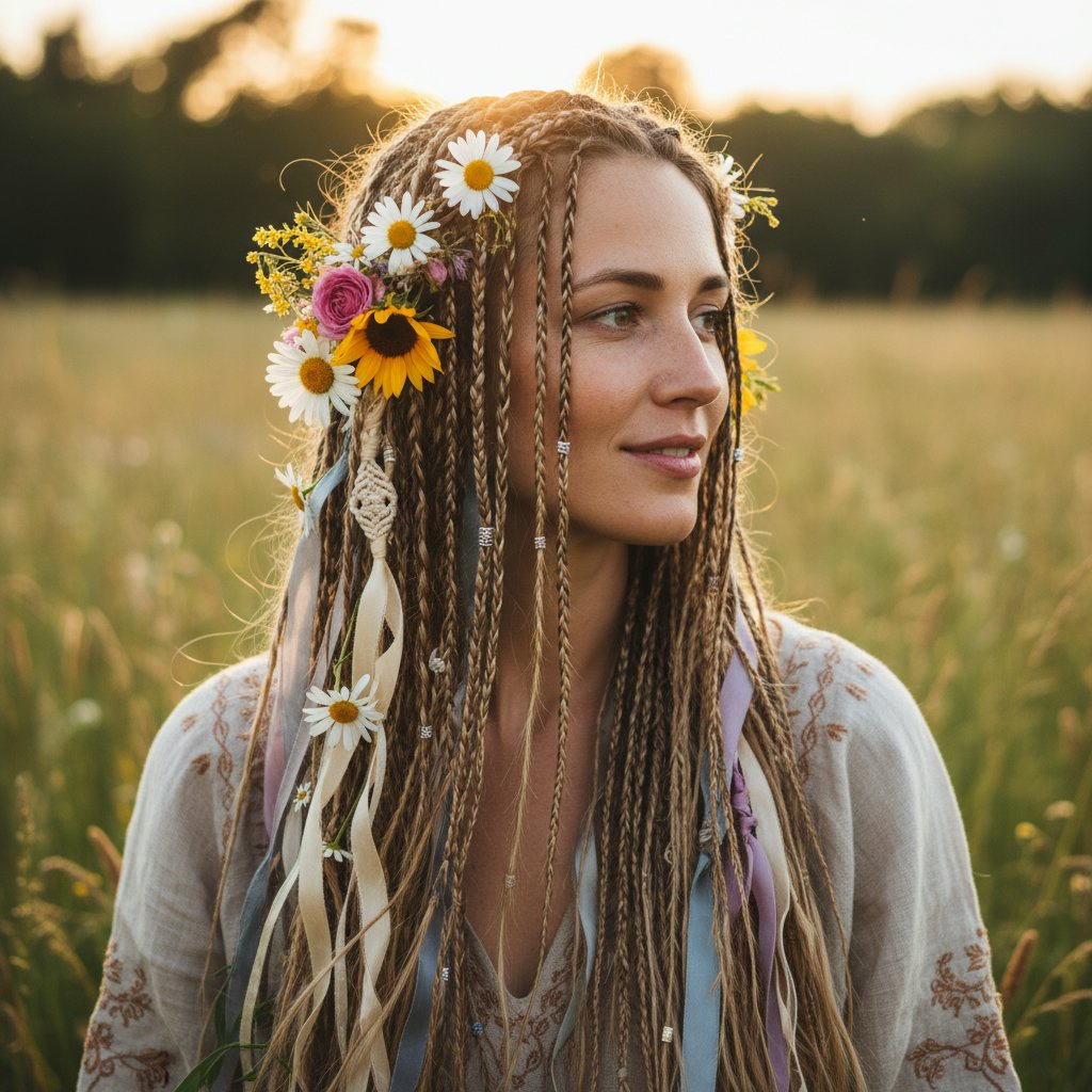 For a more laid-back celebration, opt for chic boho braids, integrating flowers or ribbons for a festive touch.