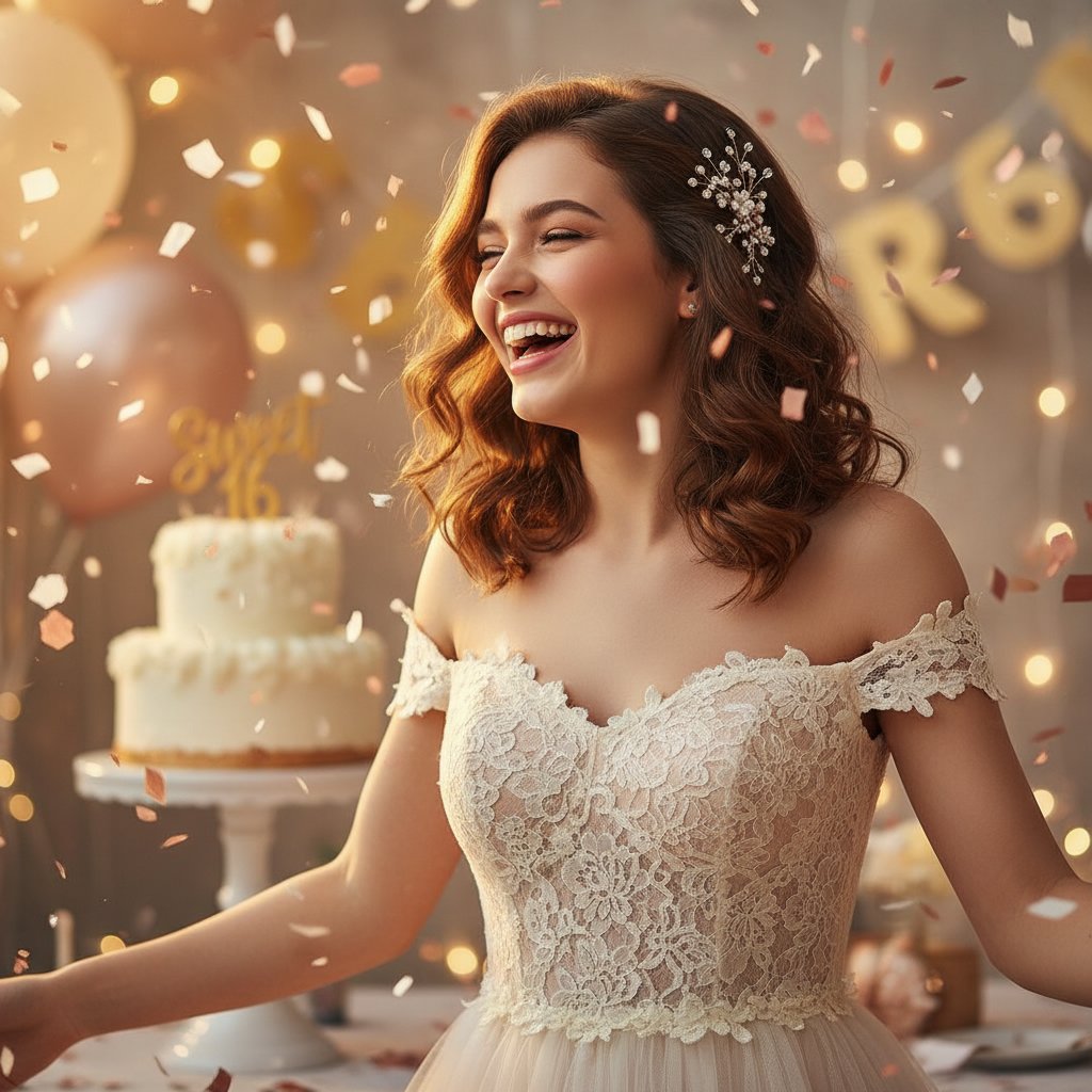 Soft, bouncy curls with a sparkling hairpin for a touch of glamour, perfect for marking the sweet start of sixteen.