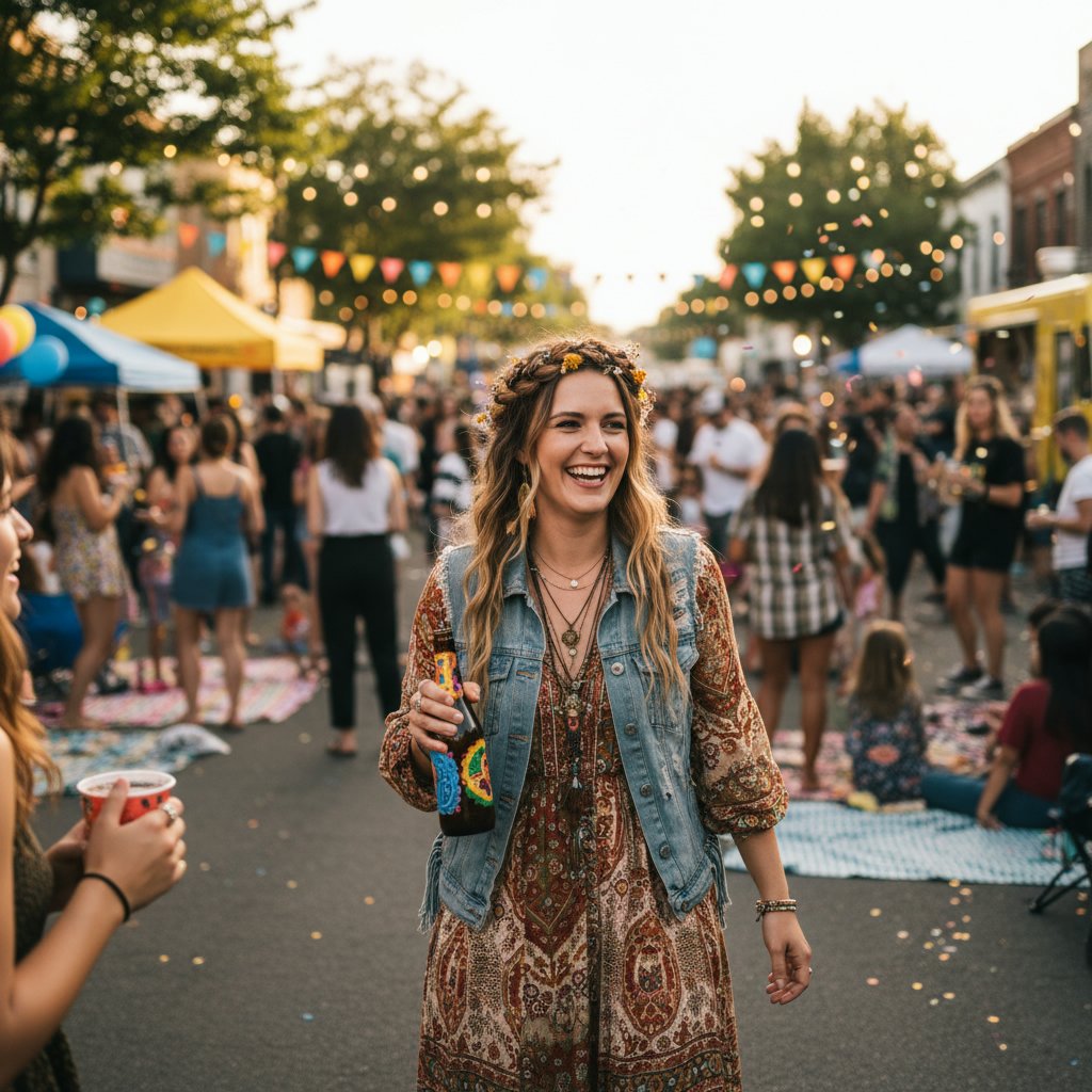A crown braid, especially when paired with bohemian-inspired attire, brings a touch of whimsy and charm to any block party.