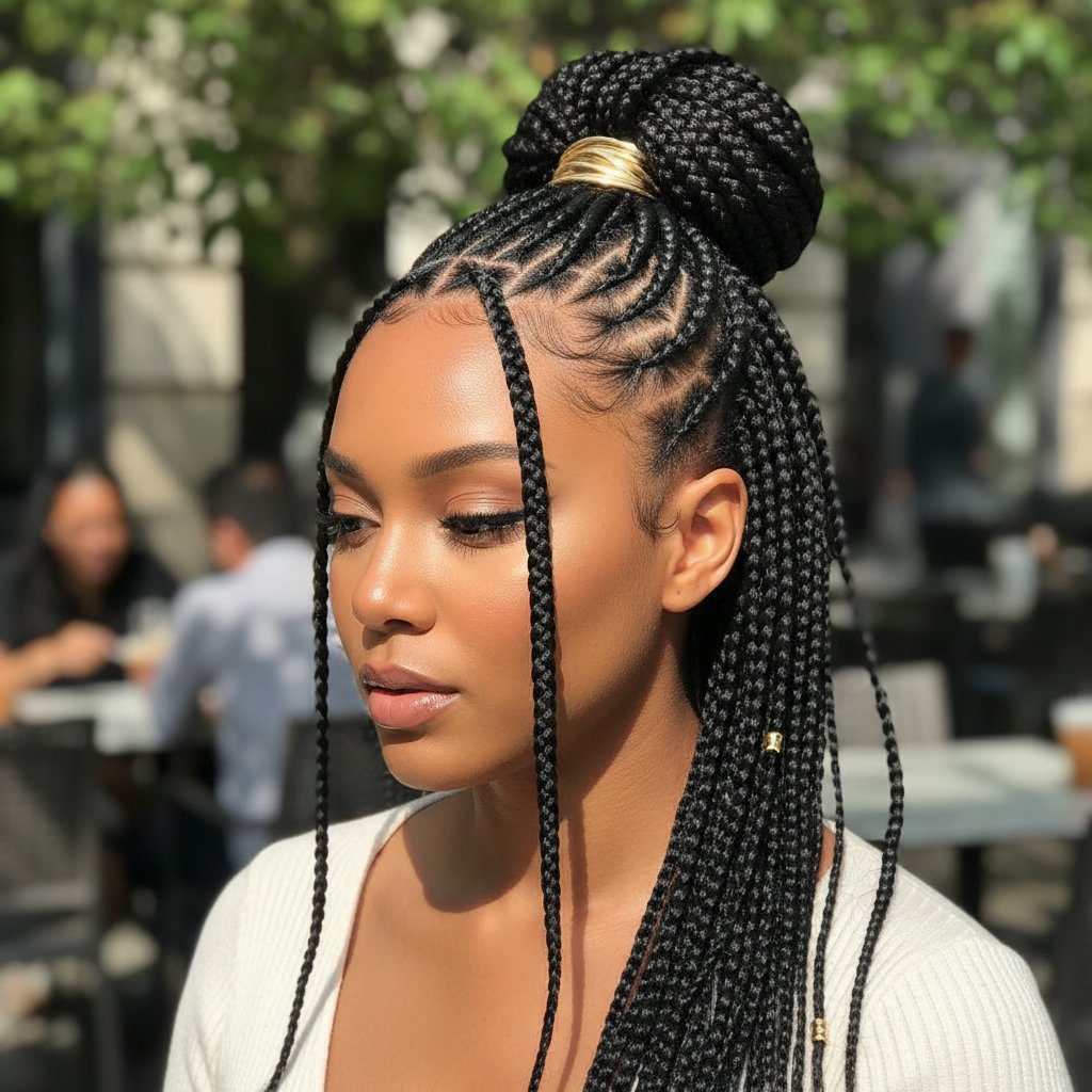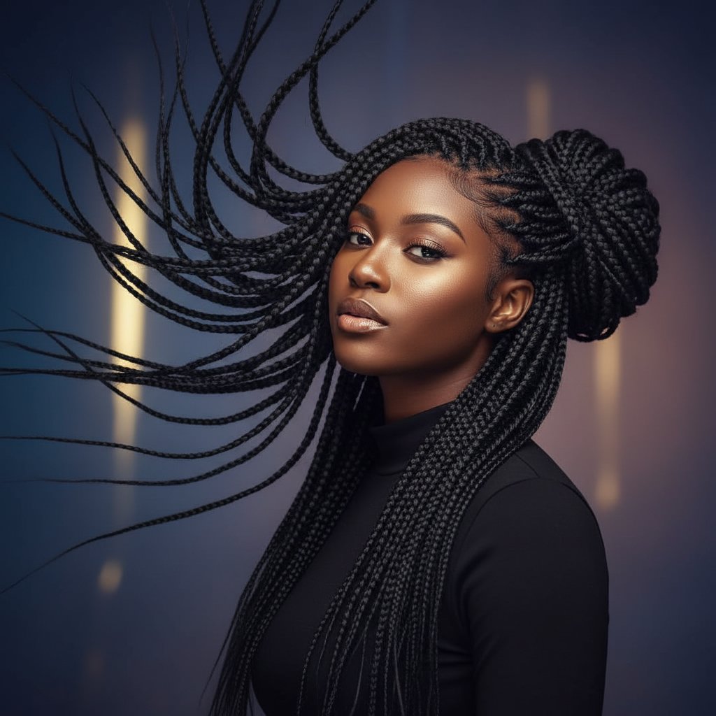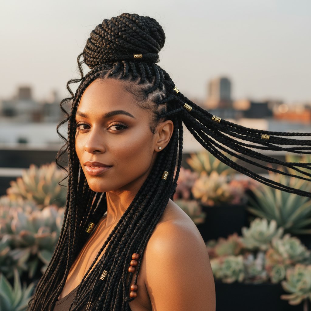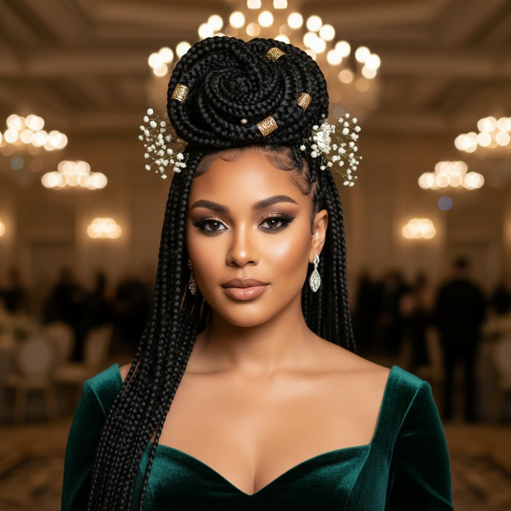 Box braids can be artistically styled into elegant updos, perfect for special occasions or a sophisticated everyday look.