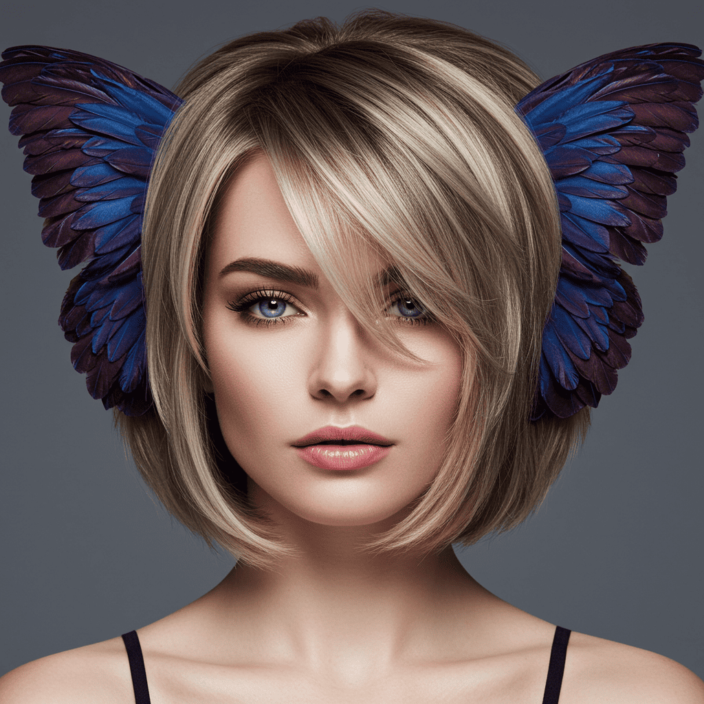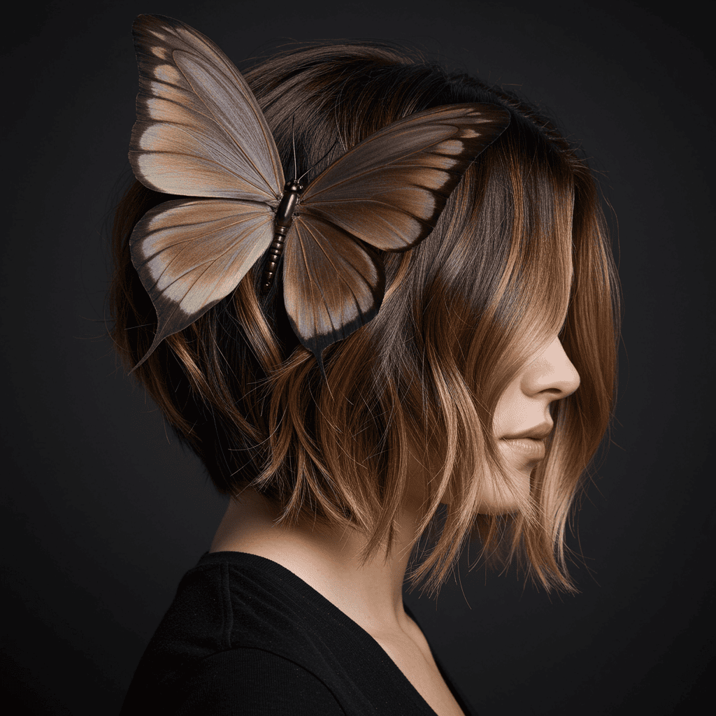 Butterfly cut with strategic highlights placed to emphasize the feathered movement and add dimension.