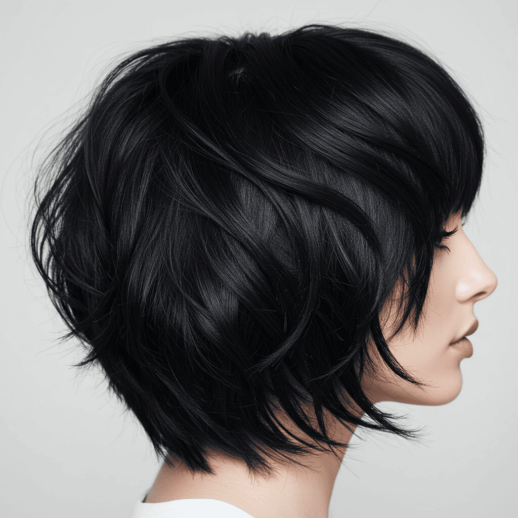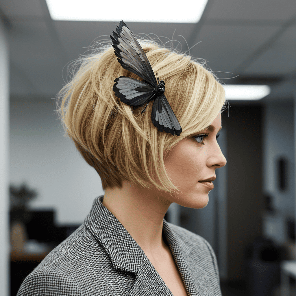 Short jaw-length butterfly cut for those wanting maximum impact with minimal length.