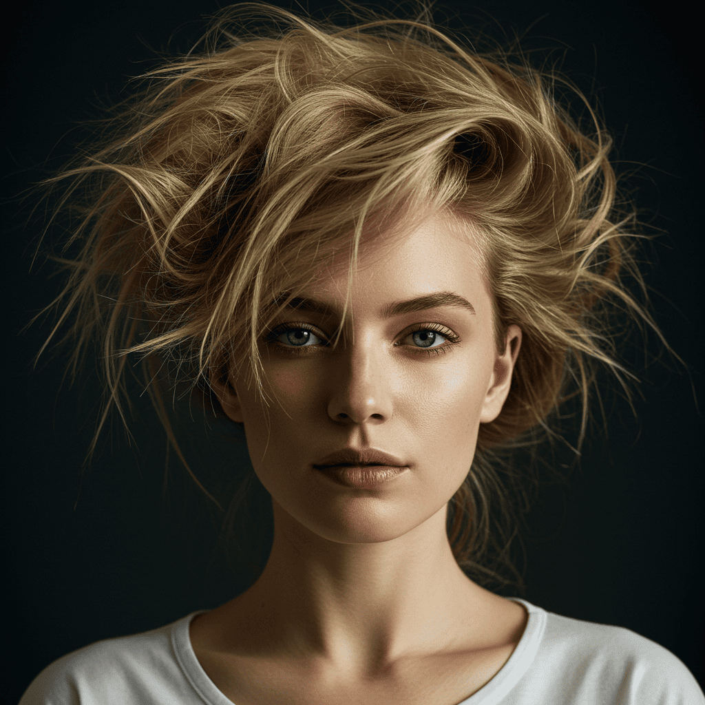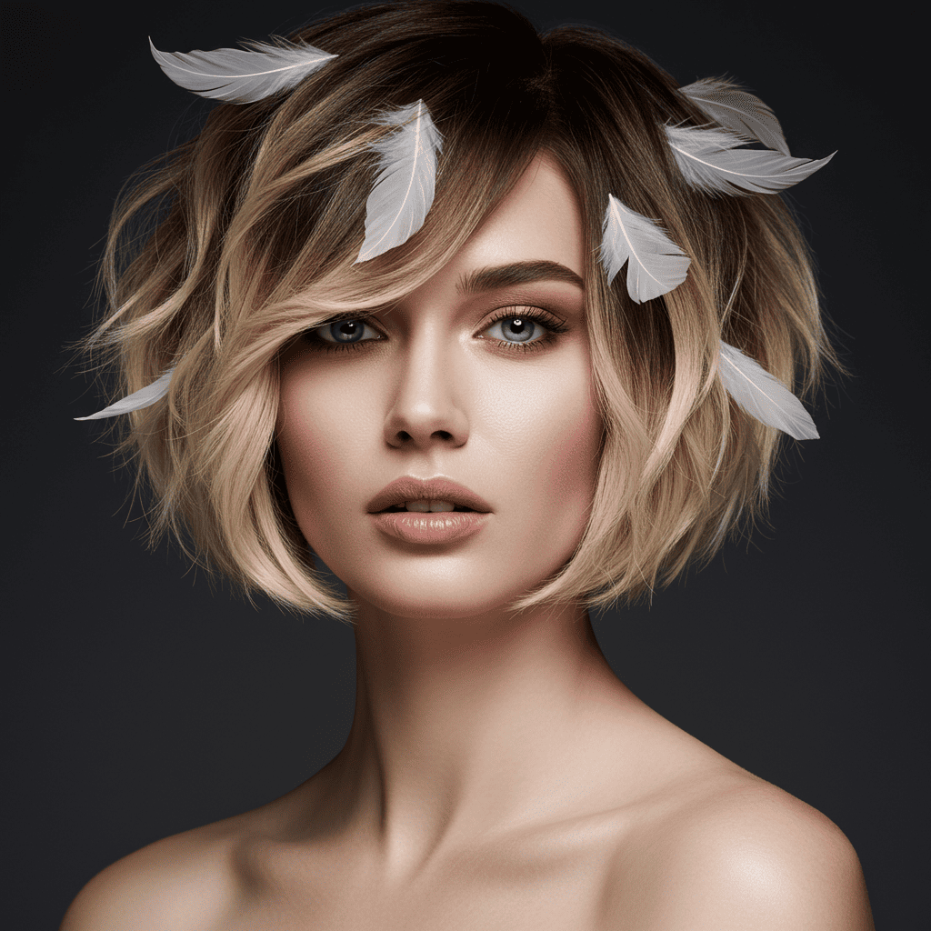 Butterfly cut captured in natural wind, showing the beautiful movement and flow of feathered layers.