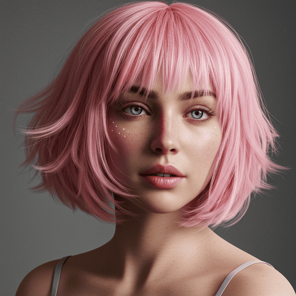 Butterfly cut in pastel pink showing how the style works with fashion colors for a modern, playful look.