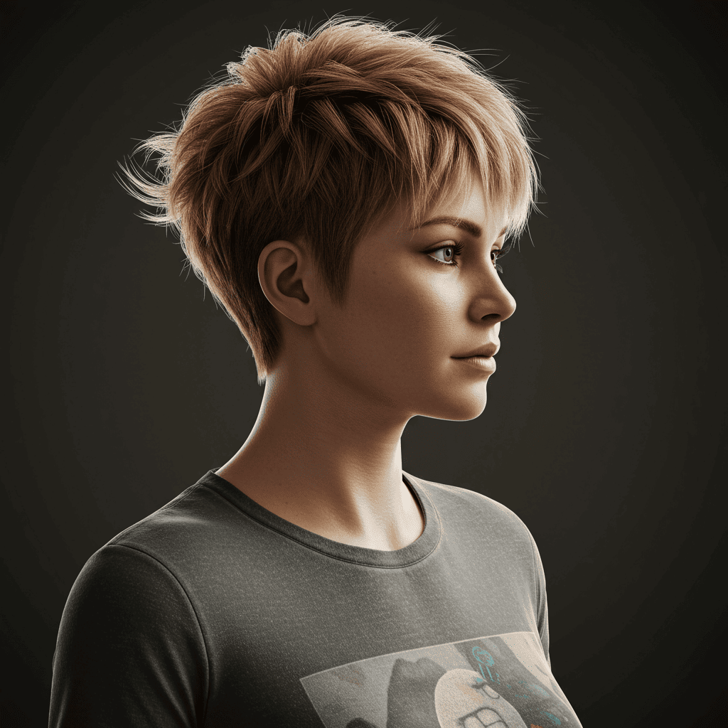 Ultra-short butterfly cut proving the technique works even on pixie lengths, adding texture and movement to very short styles.