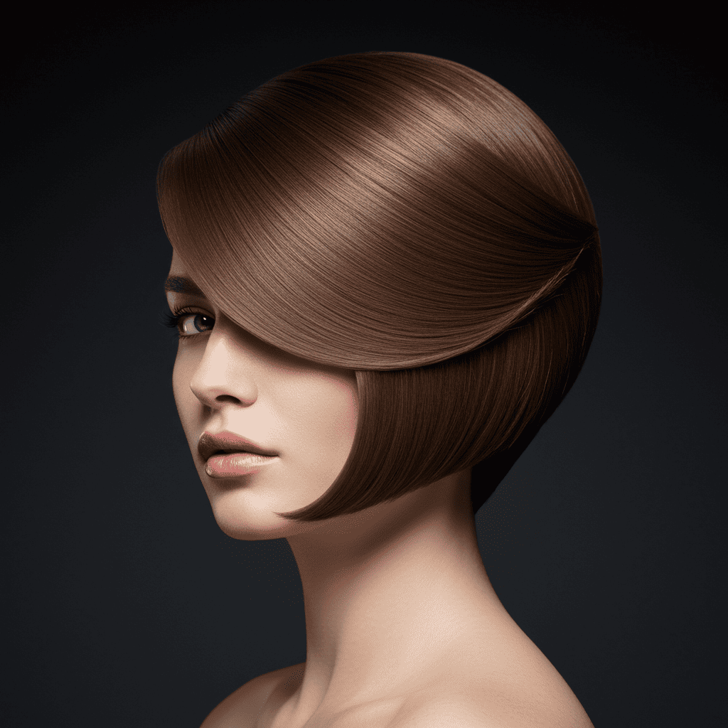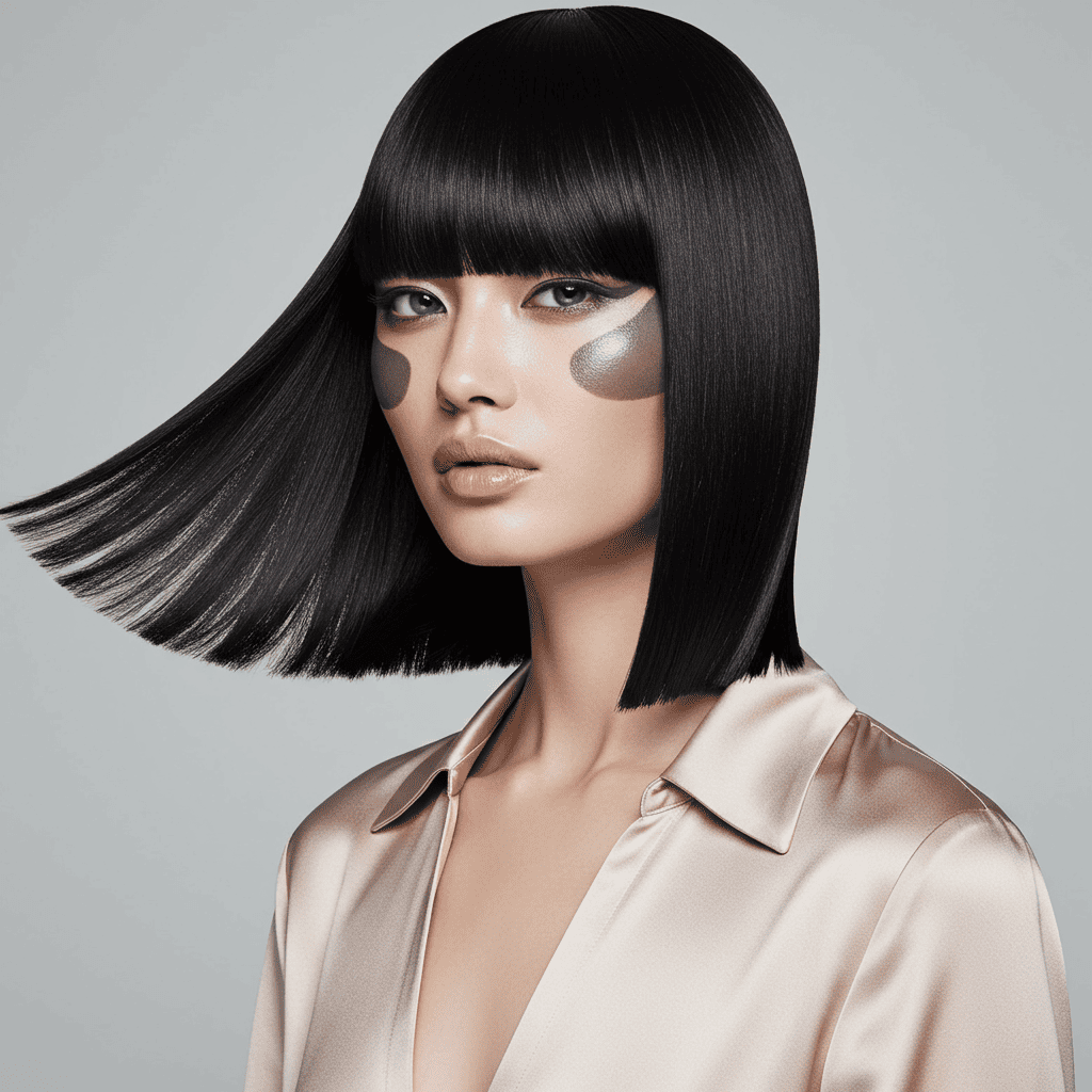 Butterfly cut styled poker-straight to highlight the precision of the cutting technique and layer graduation.