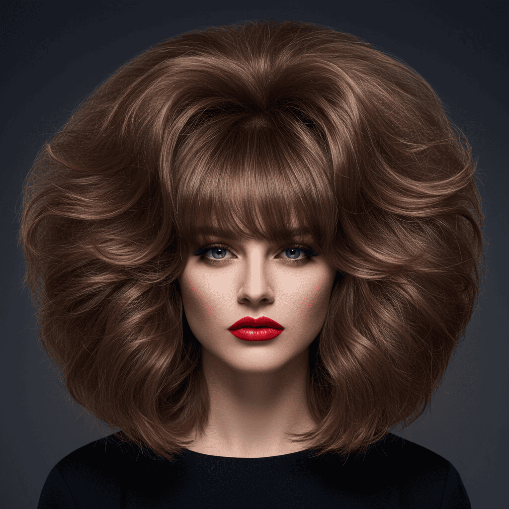 Butterfly cut styled for maximum volume, showing the cut's potential for creating dramatic, statement hair.