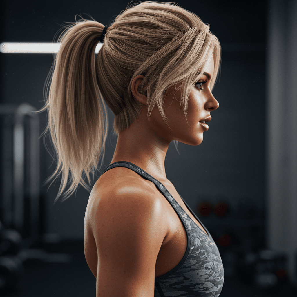Butterfly cut pulled back demonstrating how the style remains flattering even in practical, athletic situations.