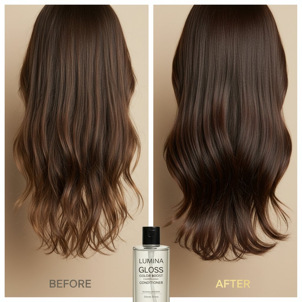 Before: Dull, washed-out brunette. After: Deep, rich brunette tones revived, showcasing the power of color-enhancing conditioners.