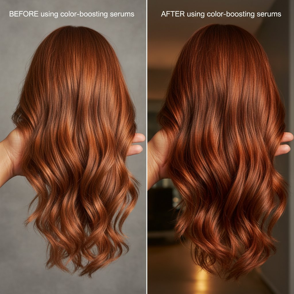 Before: Copper tones losing their luster. After: Rich, dynamic copper shades enlivened with color-boosting serums.