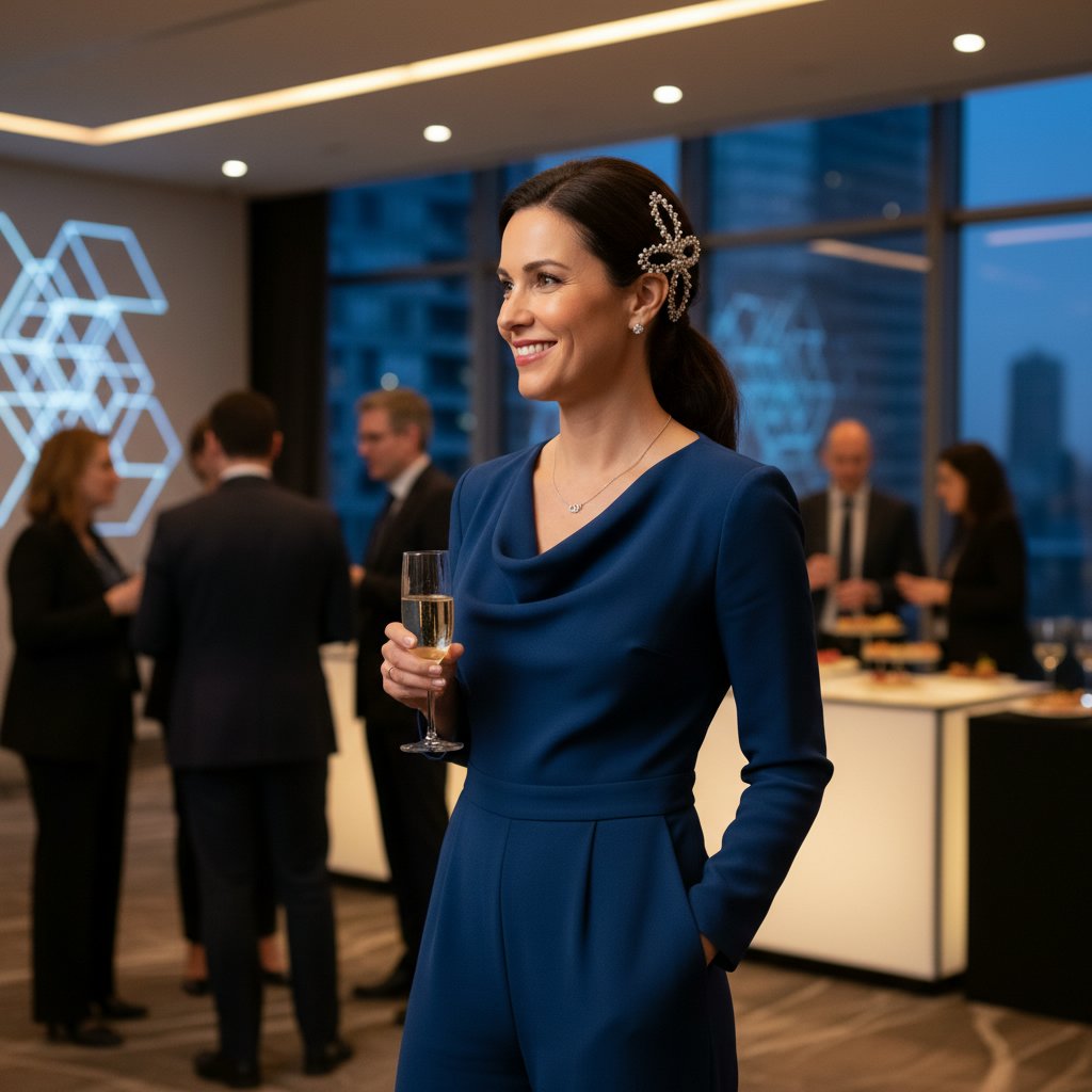 A neatly styled pixie cut that showcases boldness and efficiency, ideal for moving easily through busy event schedules.