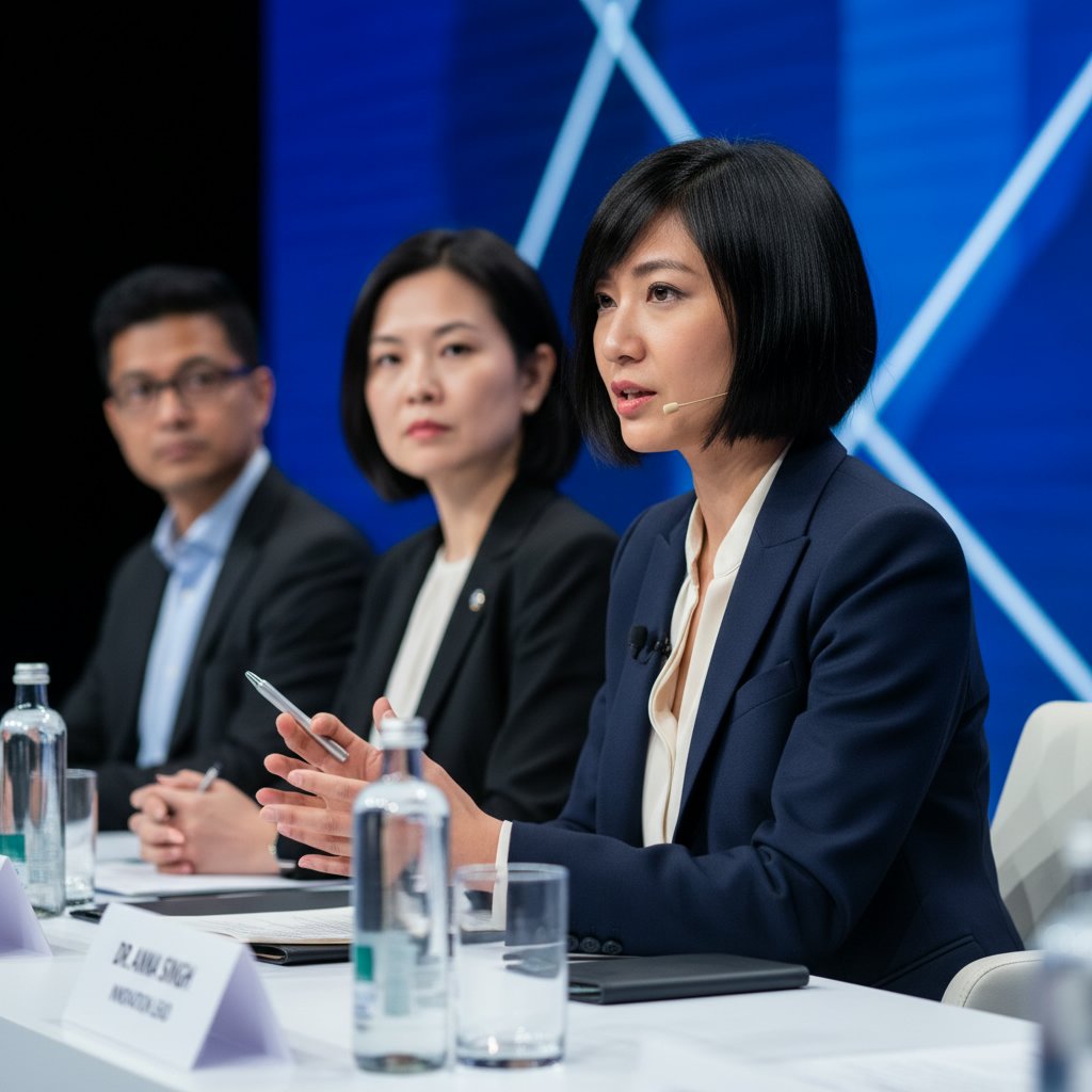 A half-up, half-down hairstyle that balances professionalism with femininity, suitable for both presentations and informal gatherings.
