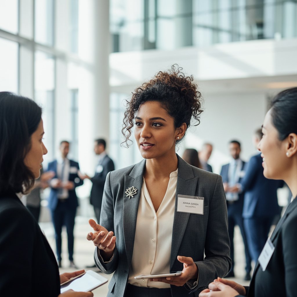 Gentle, soft waves that frame the face, creating a welcoming and approachable look for networking and interactions.