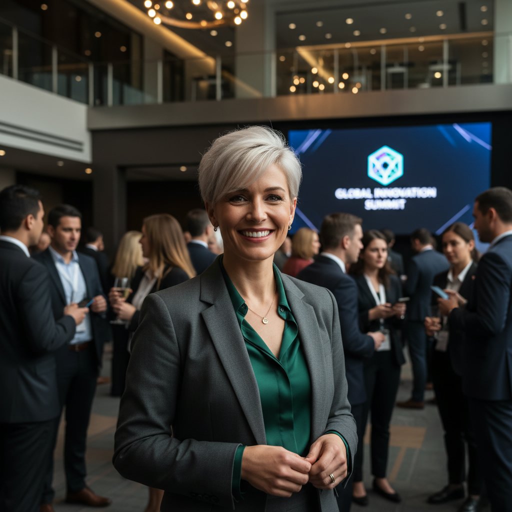 A wavy bob brings a modern and approachable look, ideal for creatives and innovators attending industry gatherings.