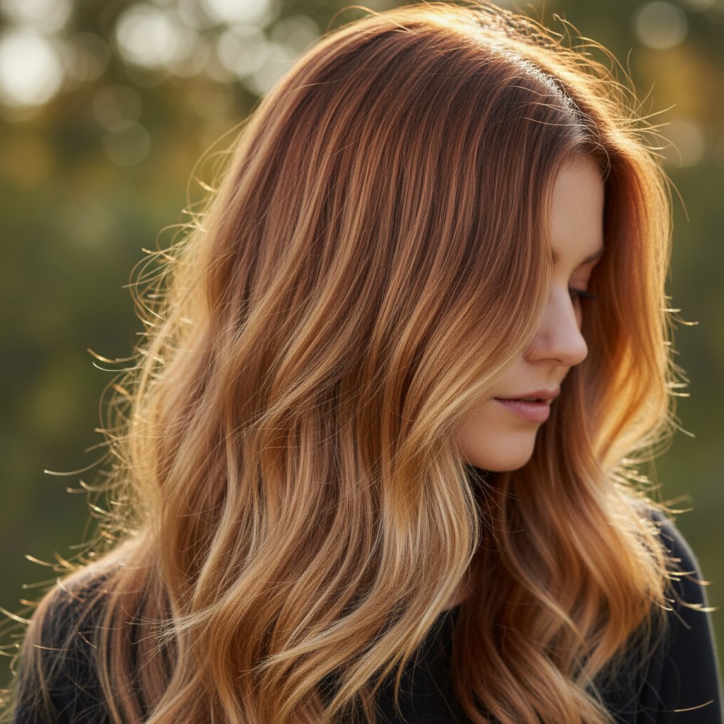 A sophisticated mix of copper and bronze tones that creates a multi-dimensional look, reflecting light for a metallic shimmer.