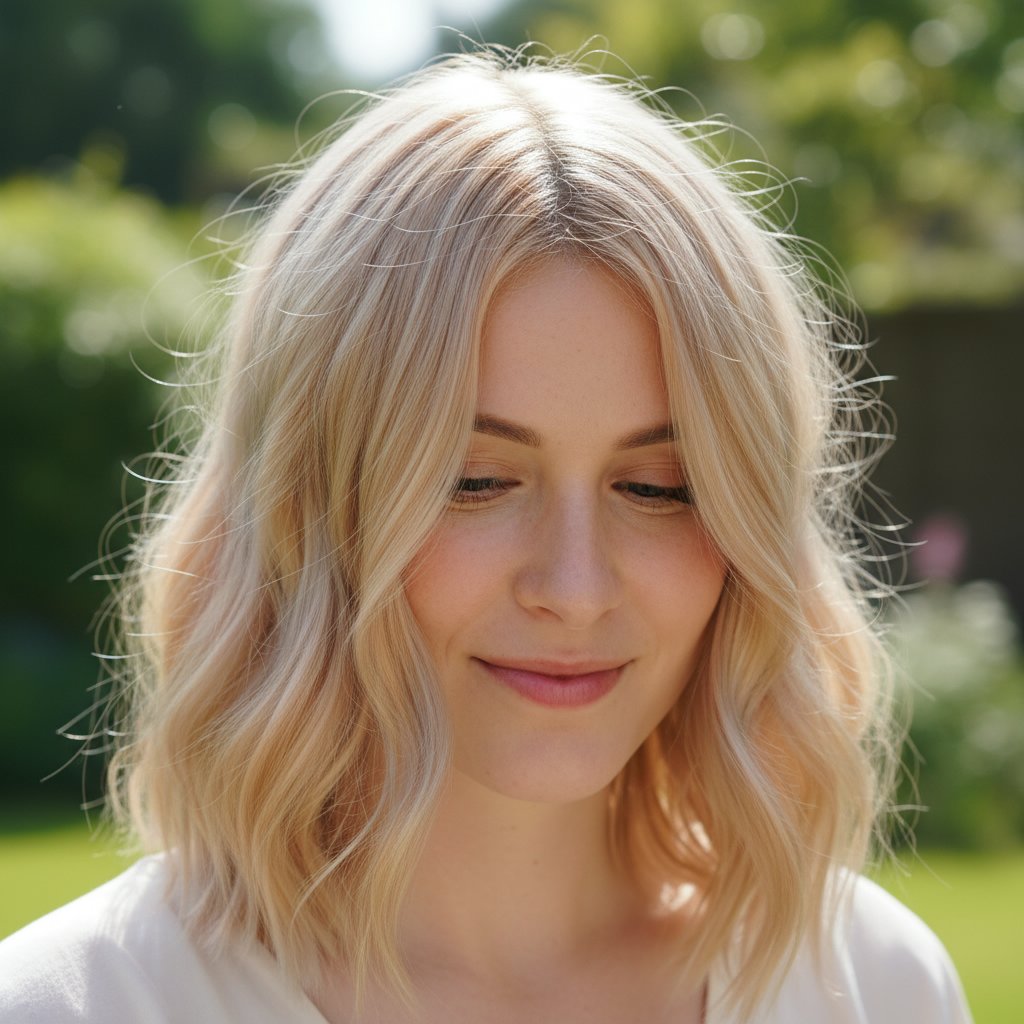 Soft, pastel copper highlights add a subtle touch of color to blonde hair, creating a gentle, sun-kissed effect.