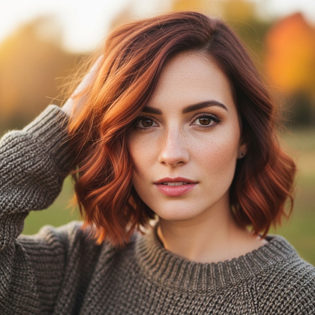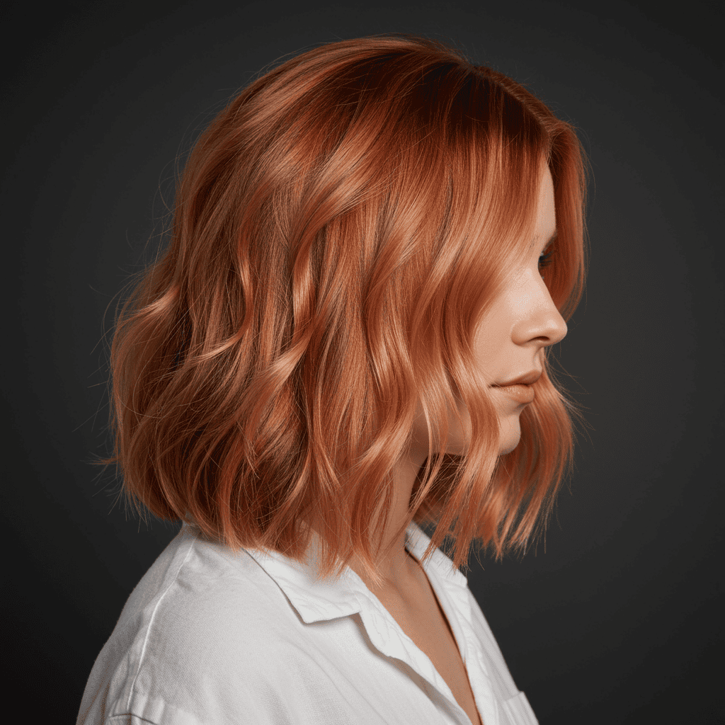 Cider copper captures autumn warmth with amber-copper tones that add cozy sophistication to the versatile lob length.