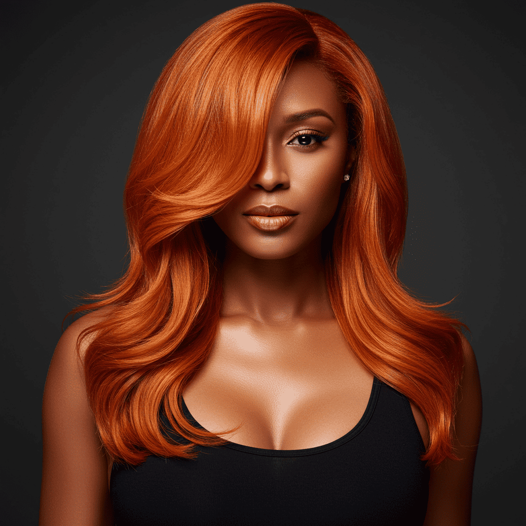 Blood orange copper delivers intense color with its deep orange-red tones, creating drama and sophistication in longer styles.