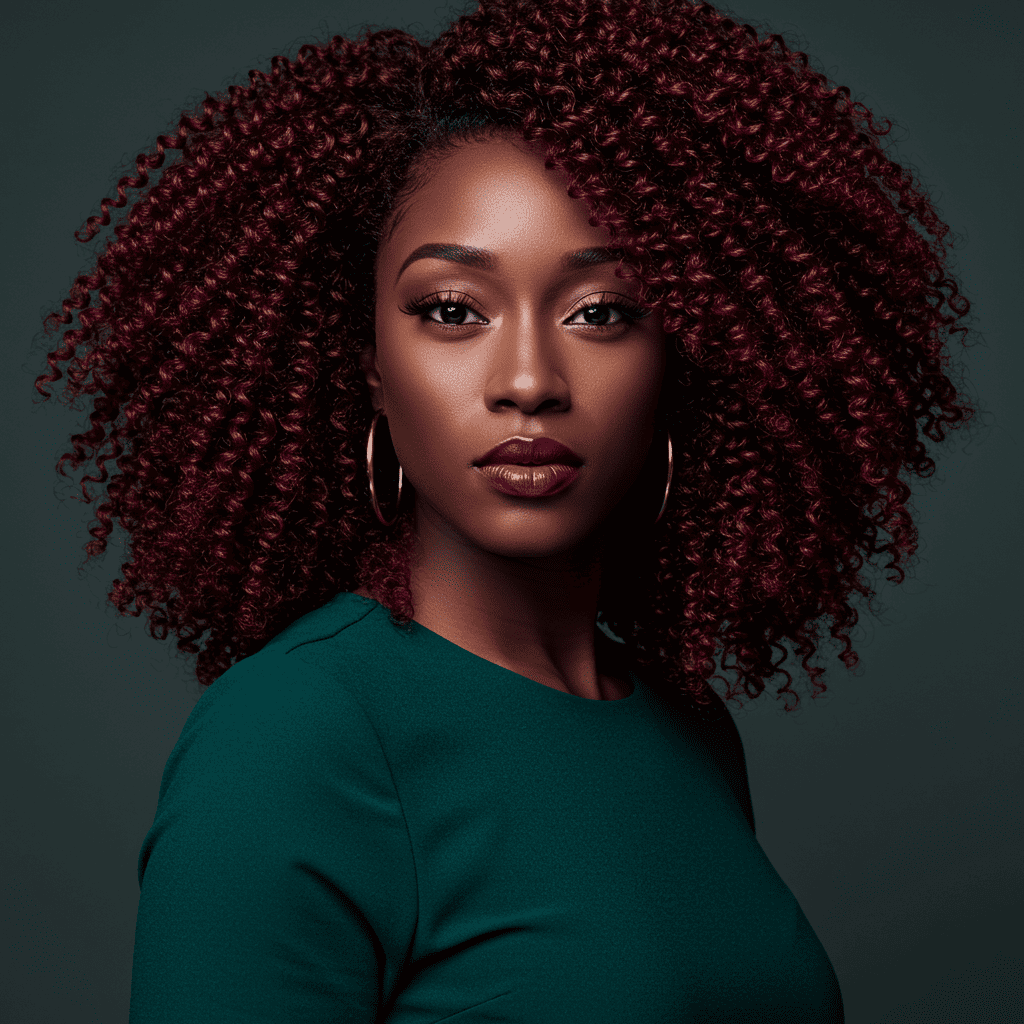 Burgundy copper brings deep wine tones to the copper family, creating rich dimension that enhances natural curl patterns and complements deeper skin tones.