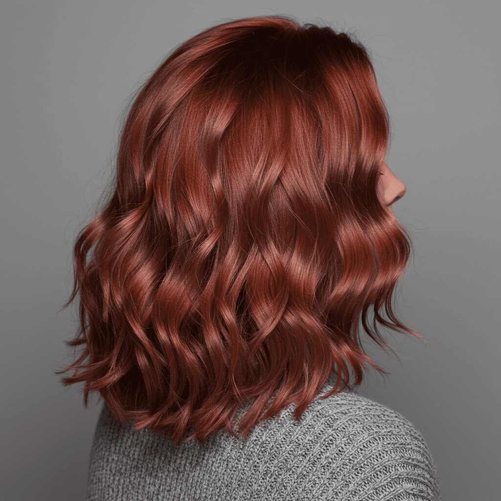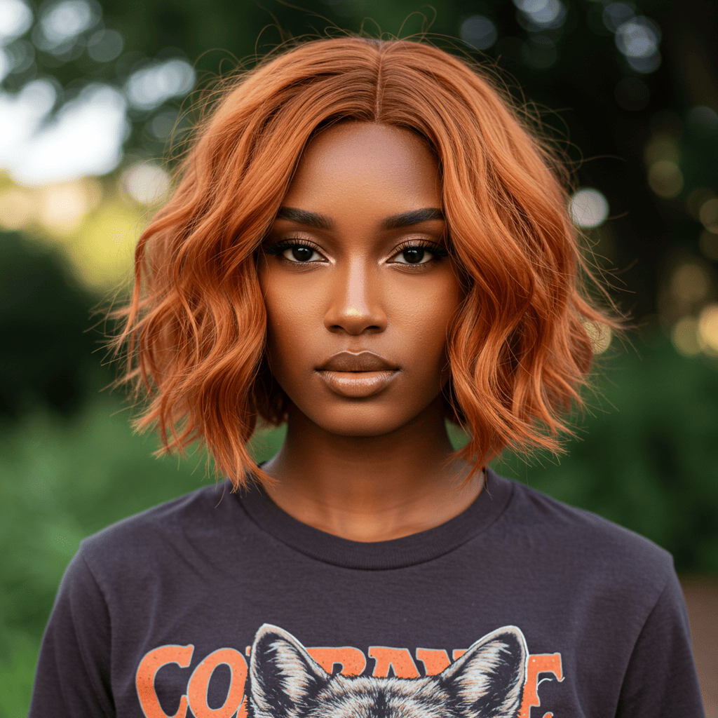 Terracotta copper brings earthy warmth to trendy cuts like the wolf cut, with orange-brown tones that complement warm skin beautifully.