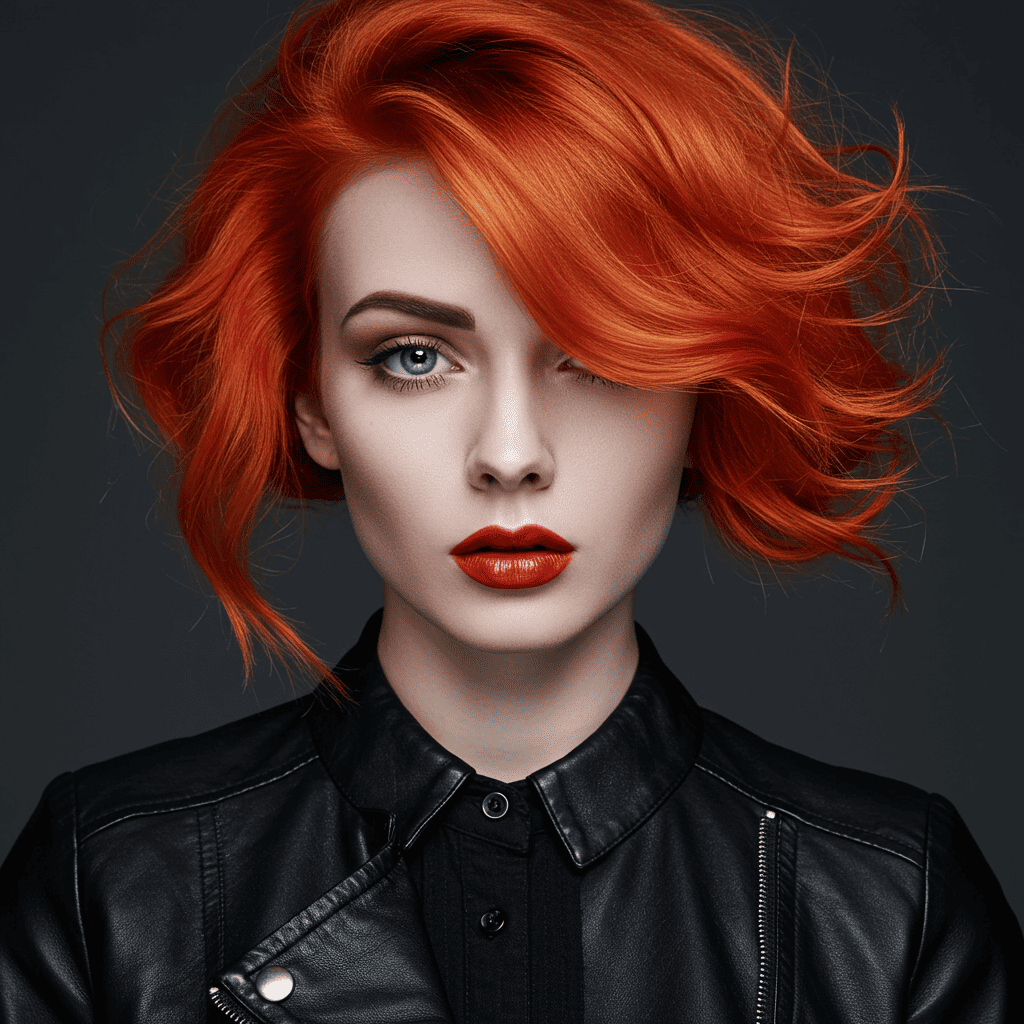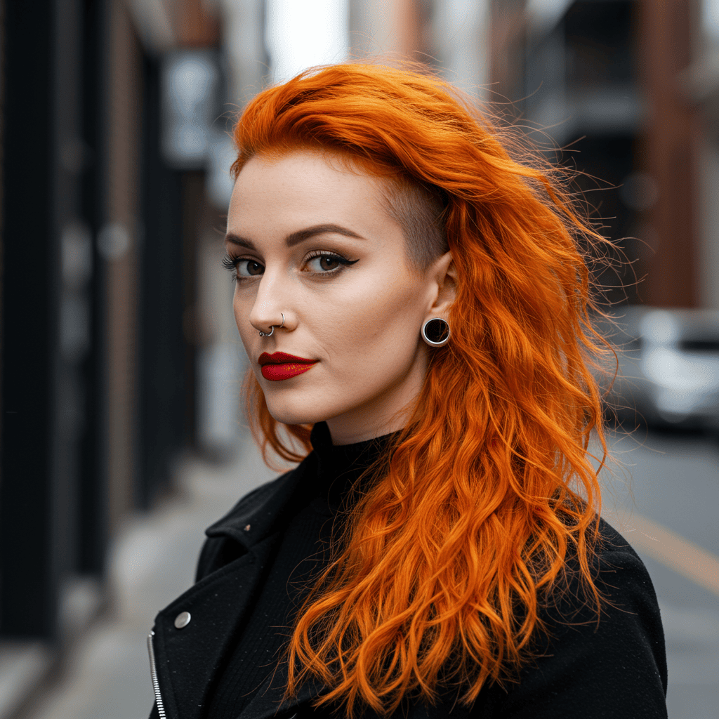 Tangerine copper makes a bold statement with its bright orange tones, especially striking in edgy cuts with shaved elements.