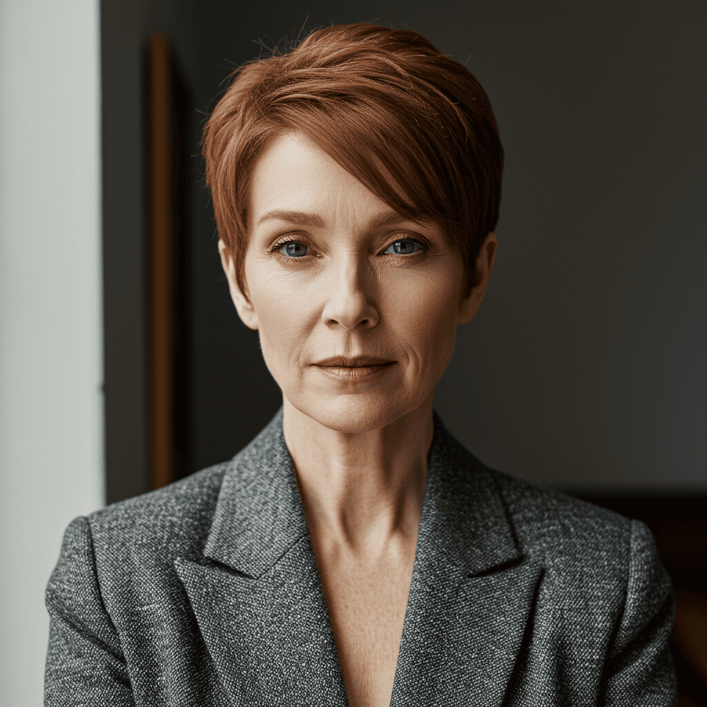 True copper penny color in a modern pixie cut demonstrates how short styles can maximize the impact of vibrant copper tones, creating a bold statement look.