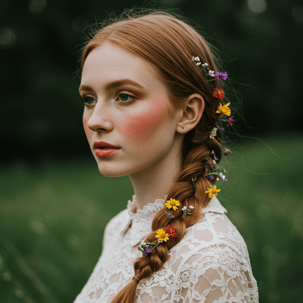 Step into a world where hair becomes poetry, adorned with wildflowers and styled with the effortless grace of countryside living. This gallery celebrates the cottagecore aesthetic - a romantic return to nature where every hairstyle tells a story of meadows, gardens, and pastoral dreams. From delicate crown braids woven with fresh blooms to loose waves that capture morning dew, these 50 styles embody the whimsical beauty of cottage life.