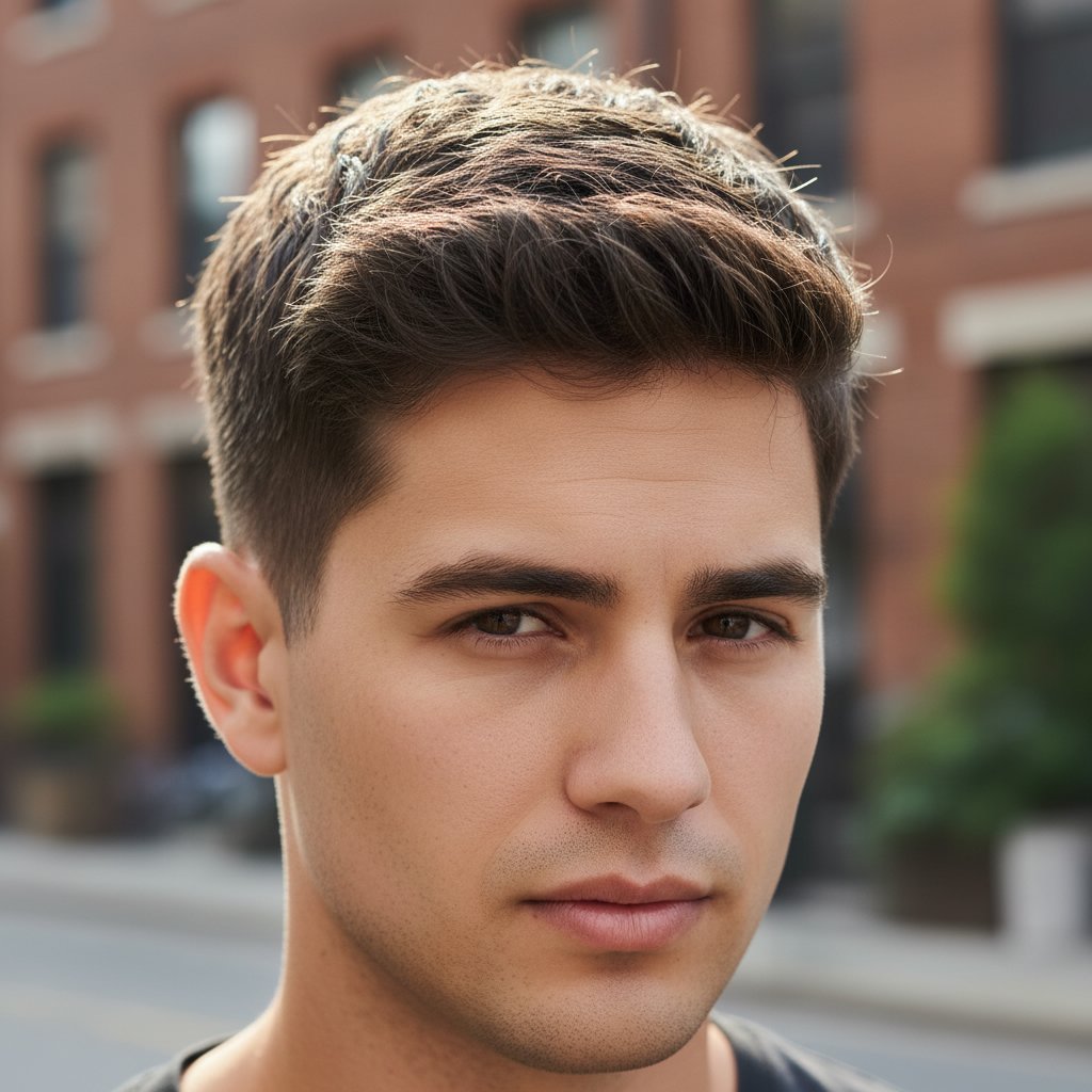 This modern take on the crew cut features textured layers on top for added depth and dimension, perfect for a casual yet polished look.