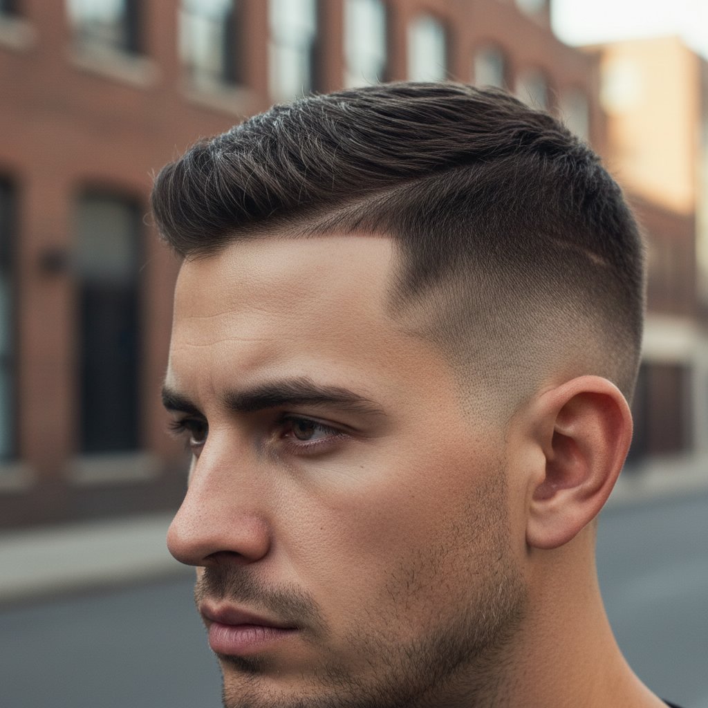 The high and tight crew cut is inspired by military style, featuring very short sides and a slightly longer, neat top.