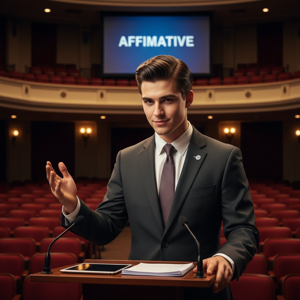 A sharp side part, offering a balance of formality and accessibility, suited for debaters who command the floor with respect.