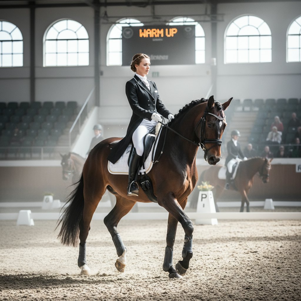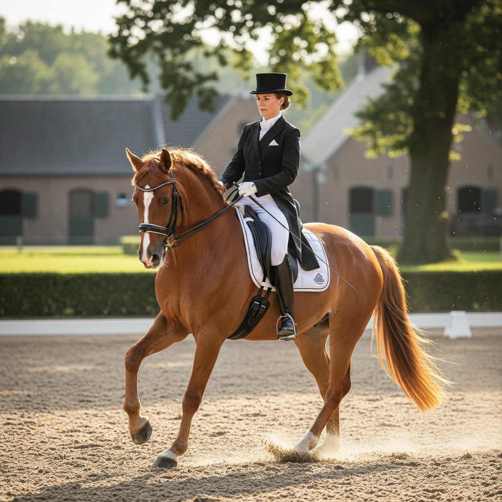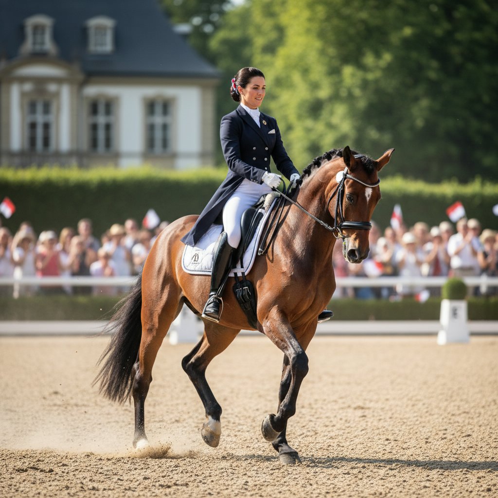 An updo featuring intricate braids not only secures the hair but also reflects the complex beauty of dressage movements.