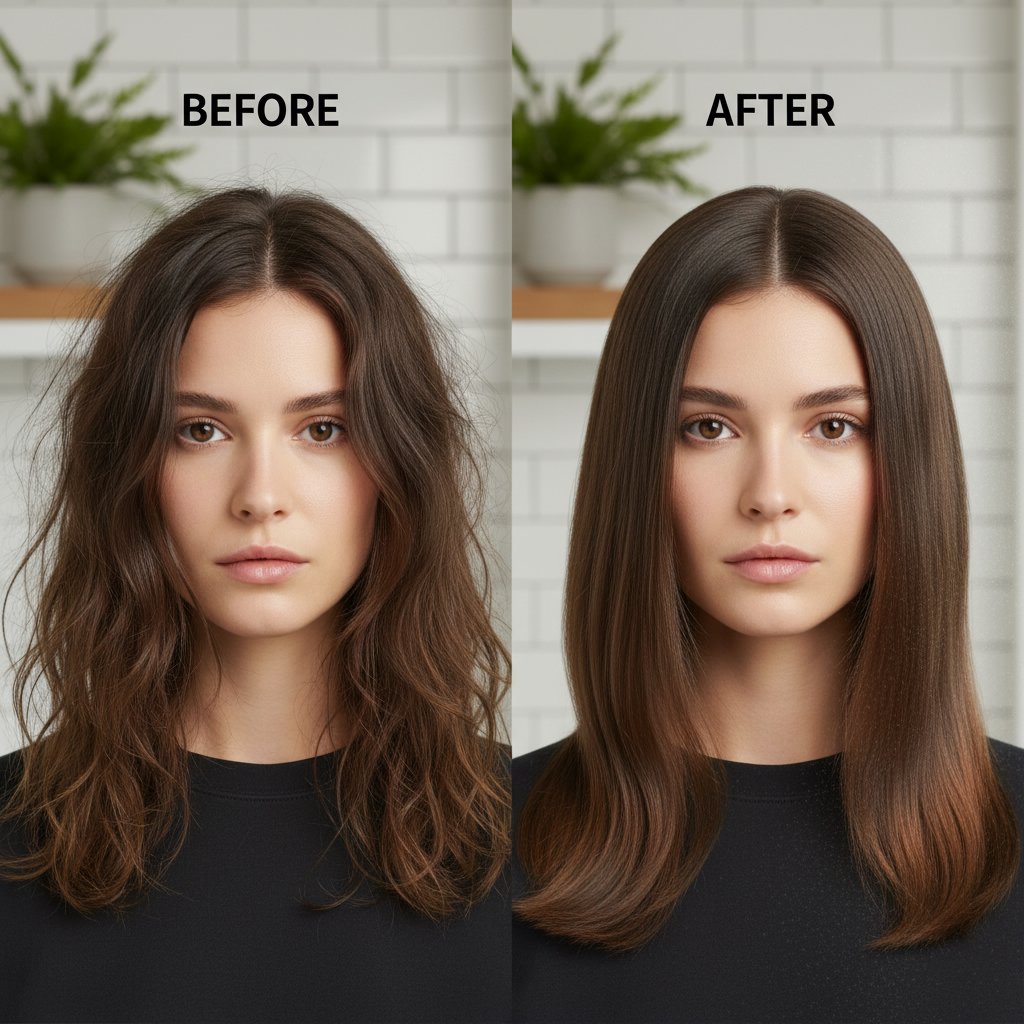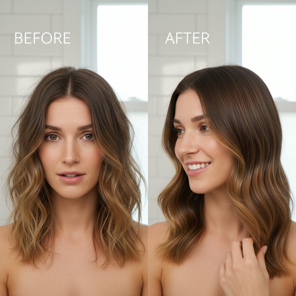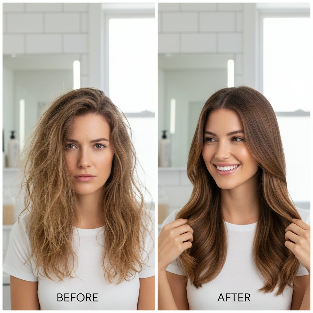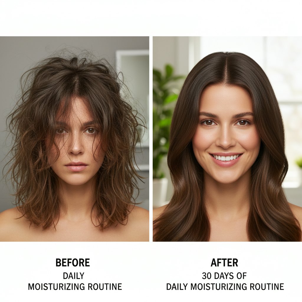 The impact of a daily moisturizing routine on dry hair, showcasing stronger, healthier-looking hair.