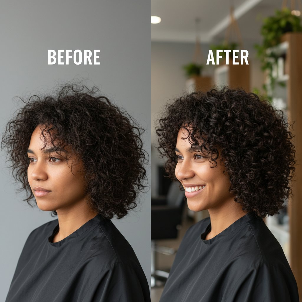 Curls revitalized with hydration therapy, transforming from dry and brittle to soft and bouncy.