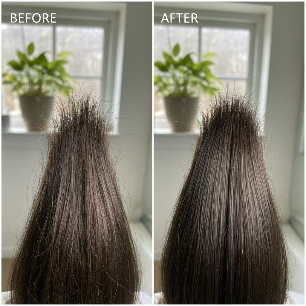 See the reduction of split ends and overall hair health improvement from targeted moisturizing care.