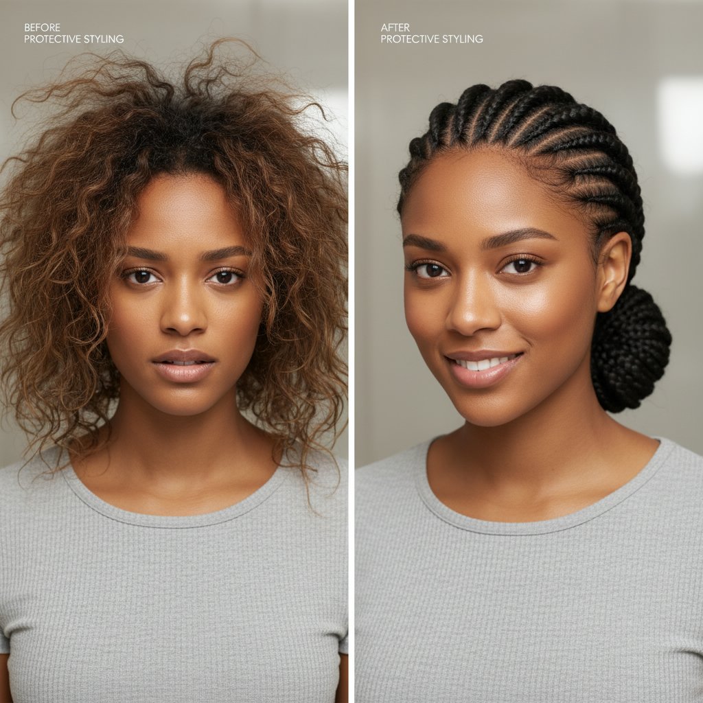 How protective styling can help retain moisture and prevent further damage to dry hair.