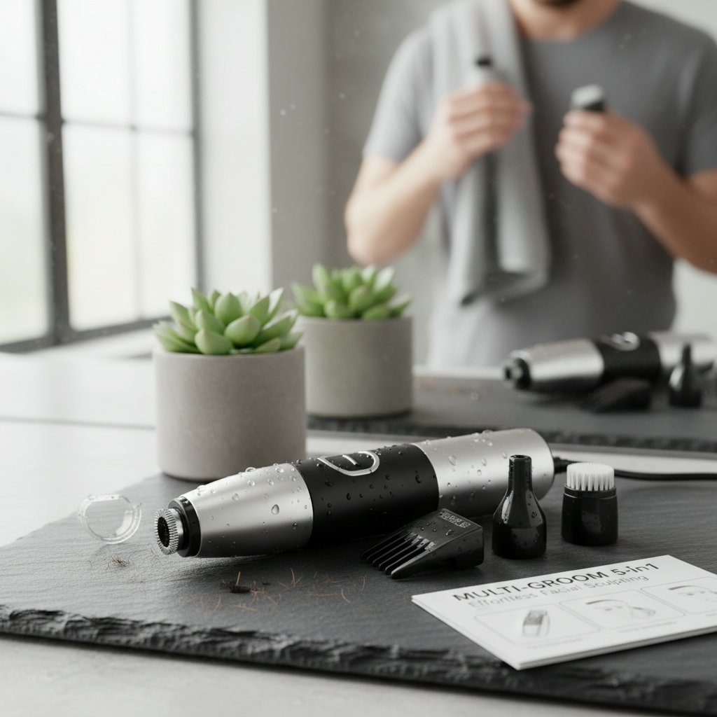 A multi-functional trimmer that combines eyebrow shaping with other grooming features for complete facial care.
