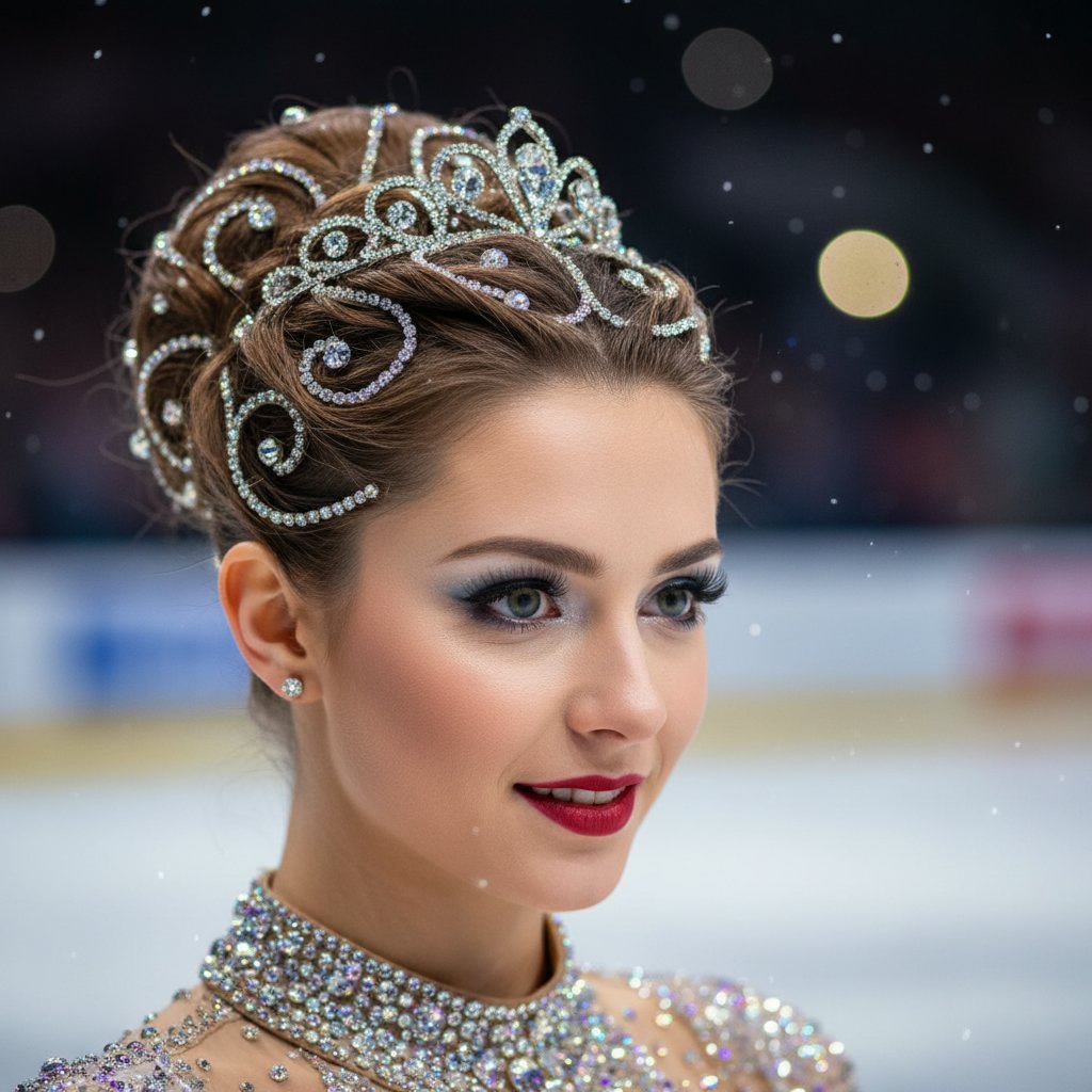 A meticulously sculpted coif that stands as a work of art, mirroring the precision and grace of figure skating itself.